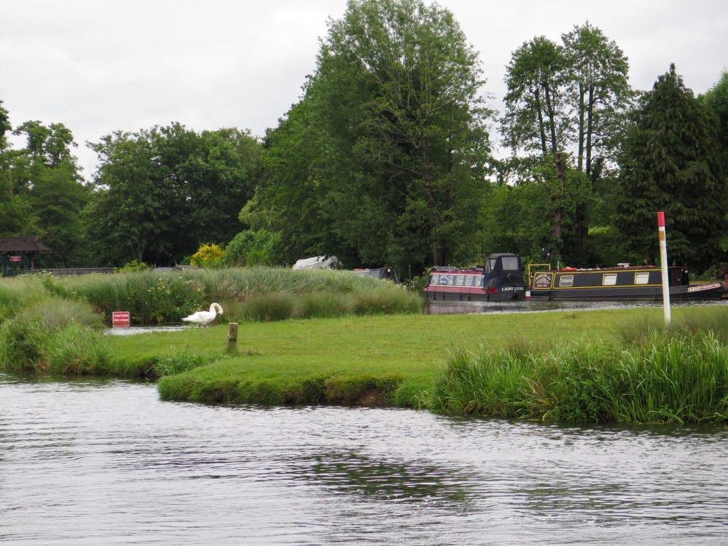 There is a nice shady spot near the New Inn at Send where we pull in for lunch and sample some of our new books for an hour or so. Then onto High Bridge for milk and tonic, and back into the Marina. We catch up with Penny and Mark for G&T’s and plan tomorrow’s cruise down onto the Thames together with Iris. We will then decide if it’s downstream to Hampton Court or follow Penny upstream for a while depending upon how we feel. A few of the Thames Locks are having problems and we don’t want to get caught out, as this time next week we’re Australia bound !
