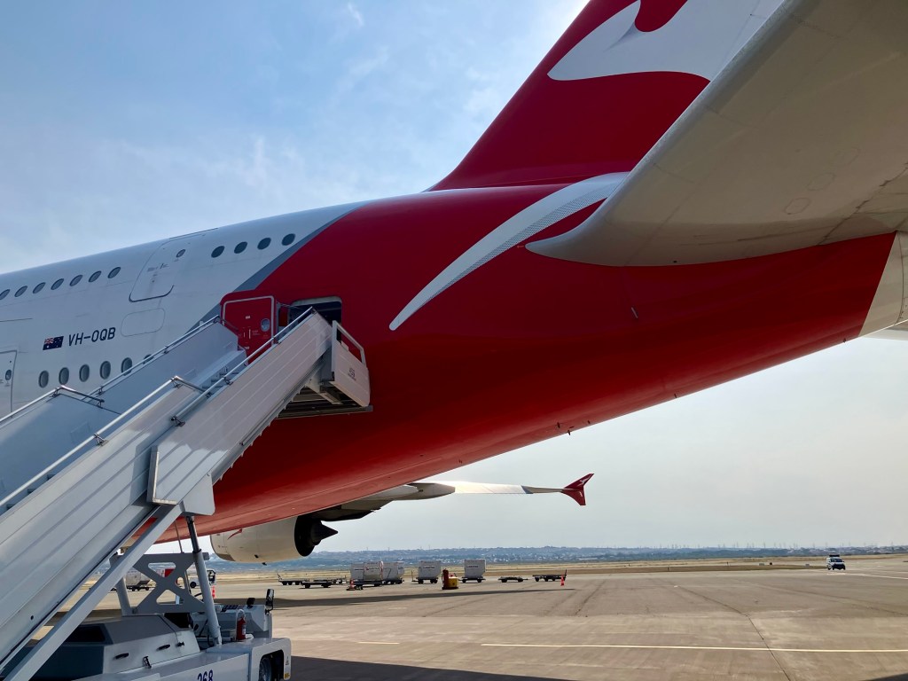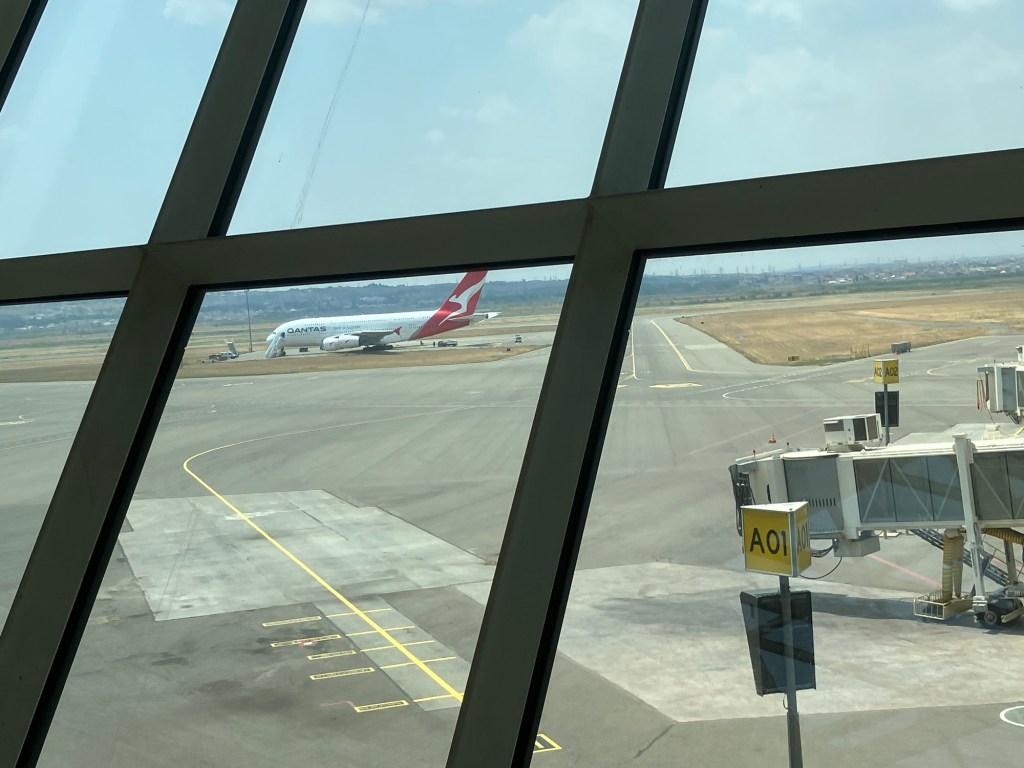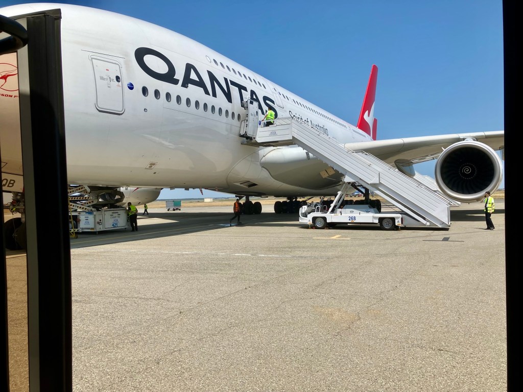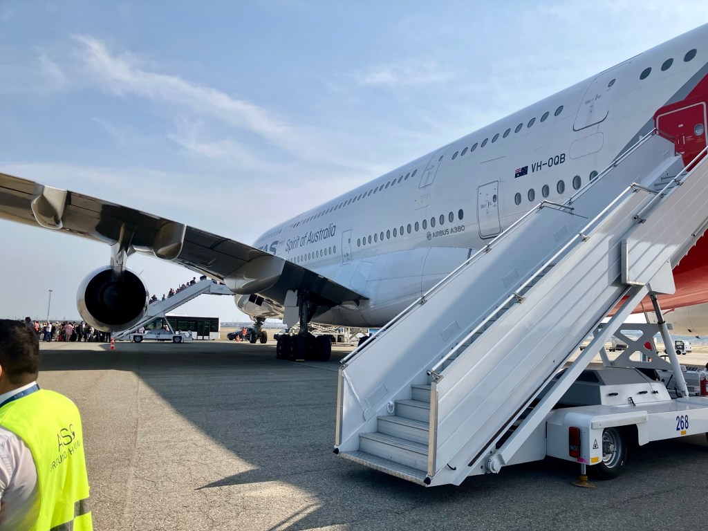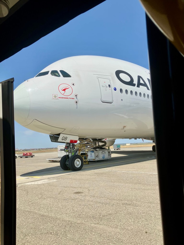 Our flight was due to take off at 4:30, but as boarding commenced just after 3pm it was never going to be met as we had to board by mobile stairs……really reinforcing what a big aircraft the 380 is.