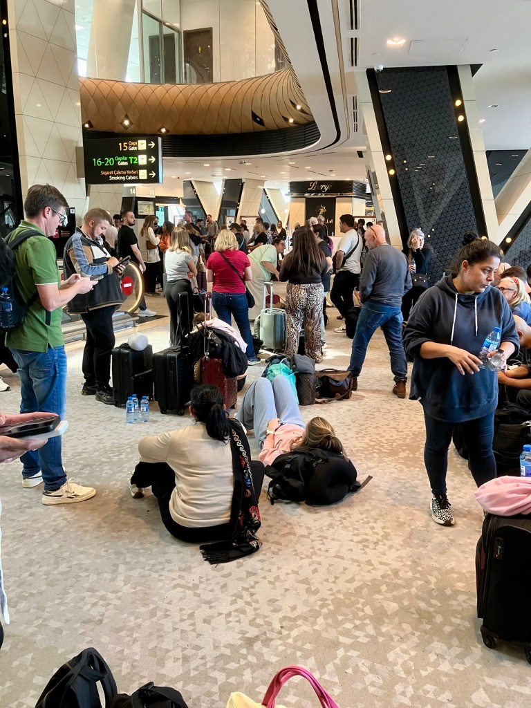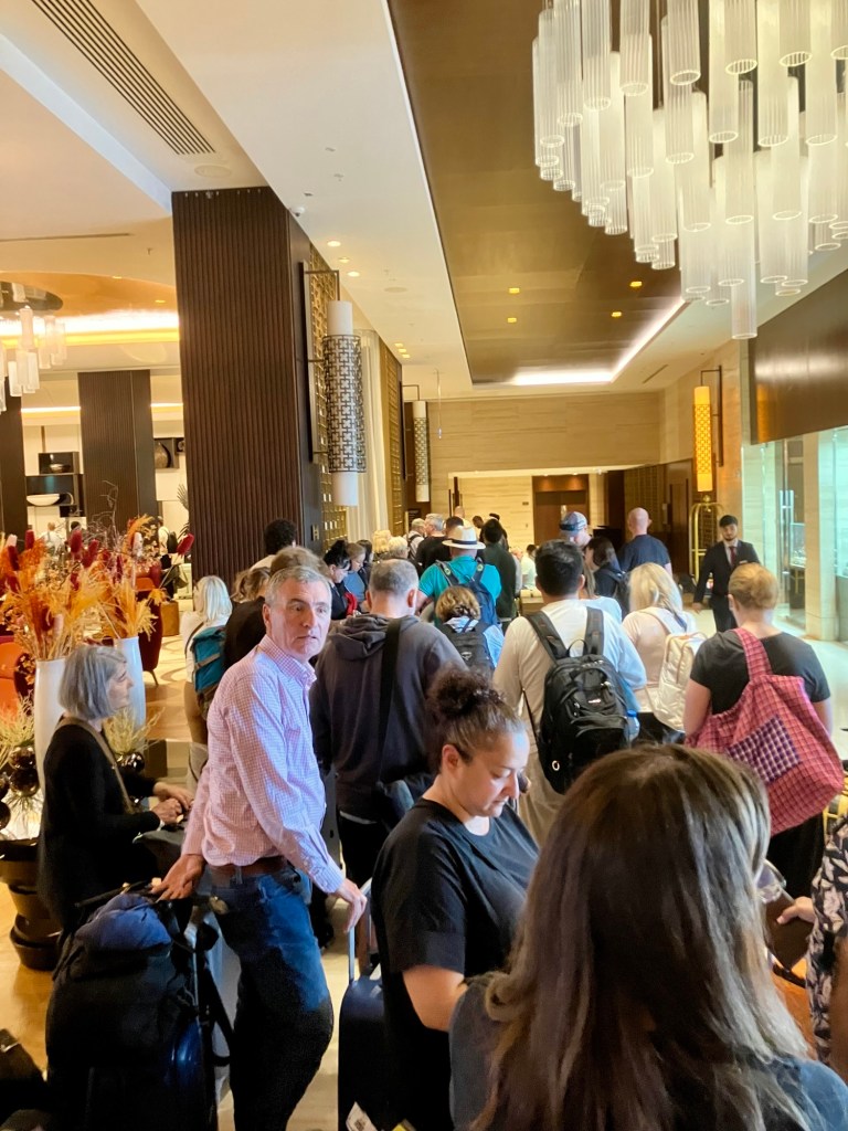 After sitting onboard for 2 hours, and having breakfast served, we de planned in groups and queued for a security check. We were then informed we all needed a visa, to be completed online, which involved uploading a photo of your passport. This took ages using the slow airport wifi, no Telstra here, and then a further wait for it to be issued.