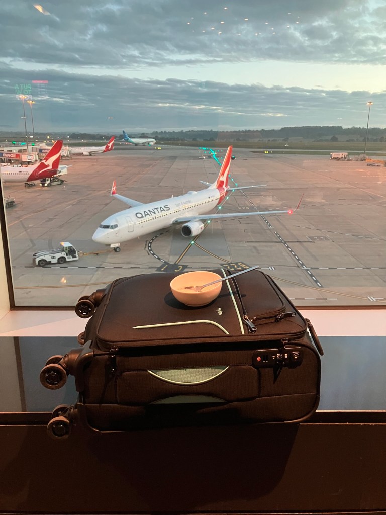 There was time to get a quick shower and brekkie in the Qantas Club before making our way to the departure lounge. Of course our flight has been delayed 2.5 hours……we wouldn’t expect anything else ! At the moment we hope to get in on Thursday morning, after leaving London on Sunday….but there’s plenty of opportunities for the saga to continue….wish us luck !