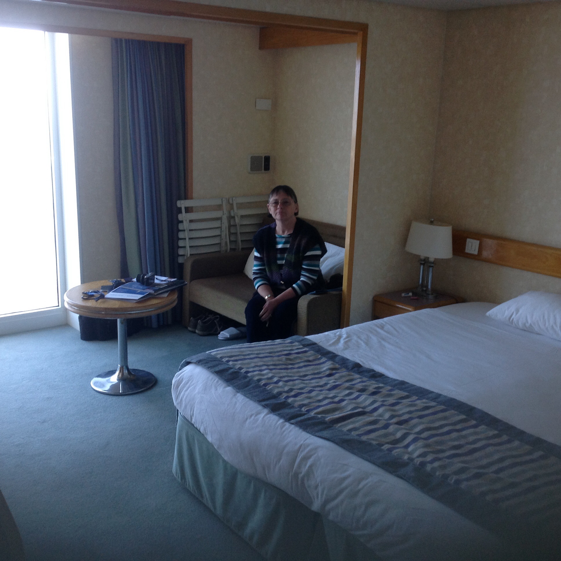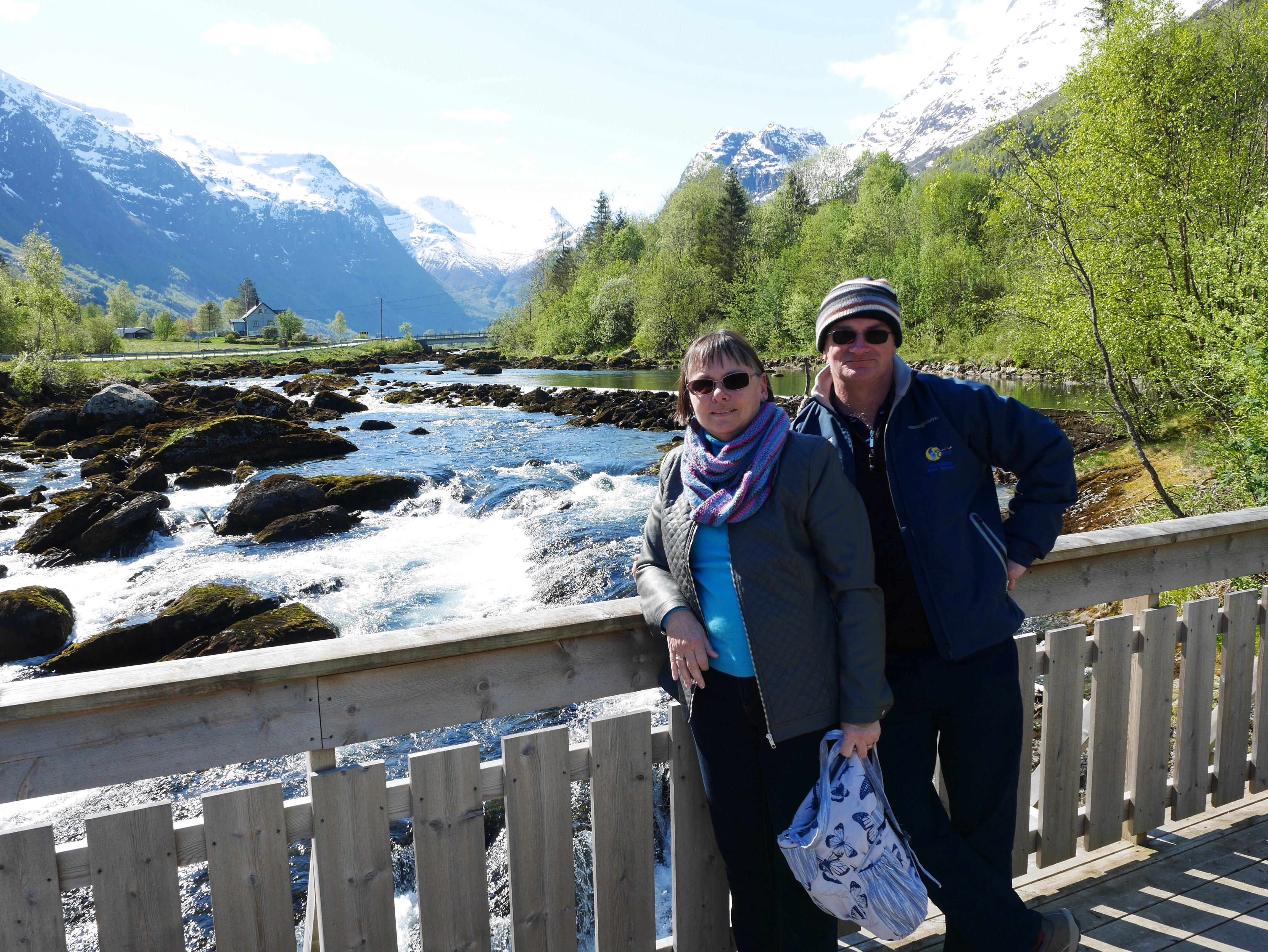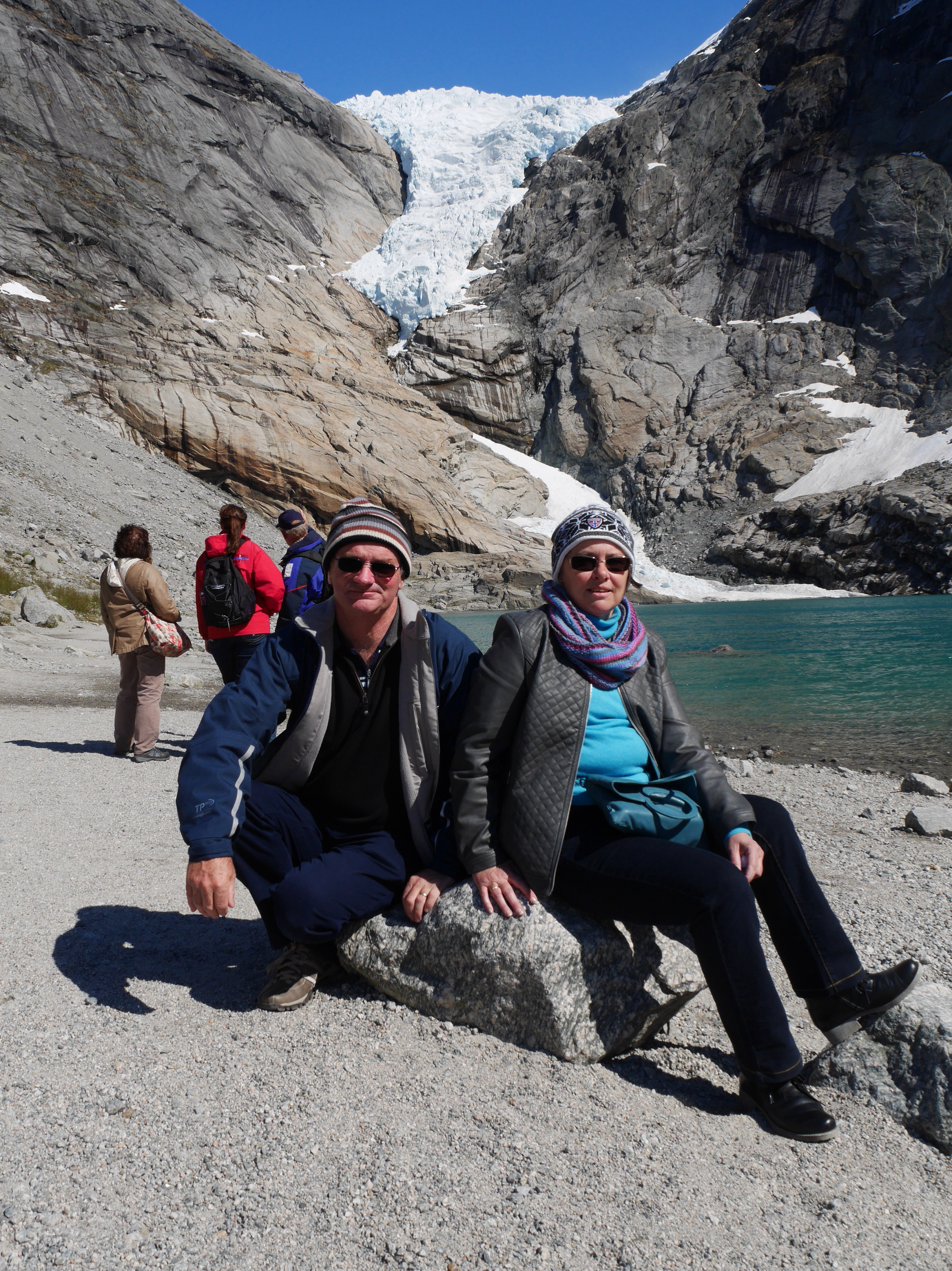 It’s been a very special day. After a good nights sleep I woke at 6 with a need to open the curtains……to a Fjord with snow capped mountains……and we continued to cruise in this wonderful Nordfjord for the next 3 hours. It was amazing talking to Mum and Dad in Australia whilst standing on the balcony watching this go by. Since docking at Olden we have done 2 excursions and hiked for 5 Kms up a mountain to see a glacier. Photographs don’t really do it justice…….I’ll sign off now and watch the departure as well as the cruise back down the Fjord whilst having dinner…..