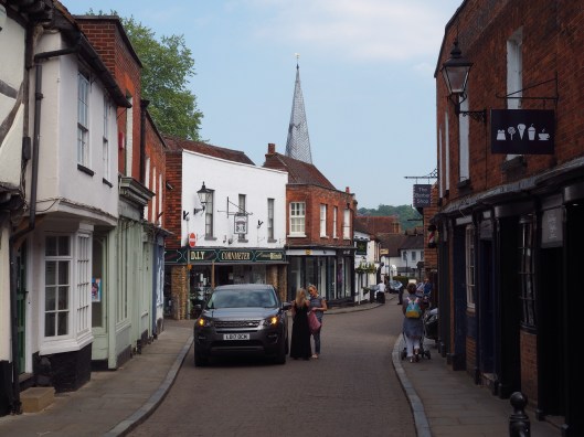 At the head of the River Wey Navigations lies the town of Godalming. Although surrounded by new developments the heart of the town still has its charm. Especially as the River goes right thru the middle of it. A short walk to Sainsburys for food was followed by a wander around the town as Hazel hadn’t explored it before.