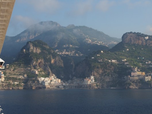 This is the sight that greeted us this morning, the Amalfi coastline emerging from mist.
