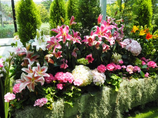 Next up was Cloud Display dome. This is AMAZING, from the 5 storey waterfall to the overall planting. Basically you go up 7 storeys by a lift and make your back down by a series of suspended walkways and internal escalators around “mountain”. The textures and range of foliage varies with the “height”. Some great carnivorous plants, not sure about the LEGO ones, and stunning orchids again.