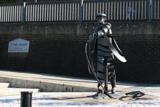Turning around we passed our mooring spot and headed through Guildford lock. The old Town wharf has a great boatsman sculpture.
