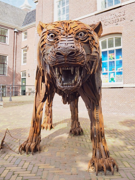 Peering out from the cabin curtains this morning saw us motoring down a long canal to Amsterdam. Docking was accomplished whilst having Brekky and involved some skilful manoeuvring. Our tour today started out at the Hermitage Museum, a satellite museum of the one in St Petersberg we visited a number of years ago. Sadly one wing was closed, the cafe was closed, and the feature film about the 6 Rembrandt’s they have on display was in Dutch. So not a brilliant start, though I loved the giant tiger!