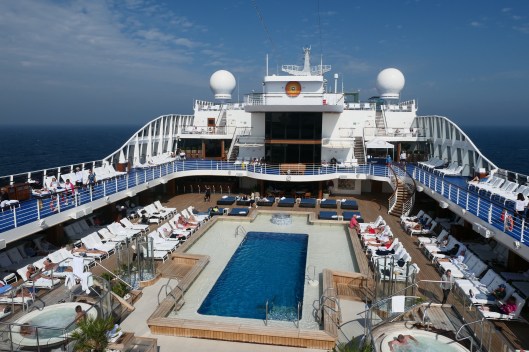 A day at Sea means lectures and dining, and we seem to be doing plenty of both! I’ll have a few laps around the decks later on as the weather is very mild and the ship has a number of fitness tracks. Tonight we dine in one of the four speciality restaurants on board, Toscana, after the Captains champagne party of course!
