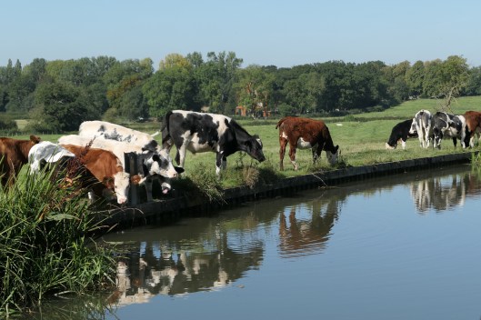 It’s a maze of side rivers, weirs and channels. Large numbers of Canada geese are cropping the fields and water weeds.