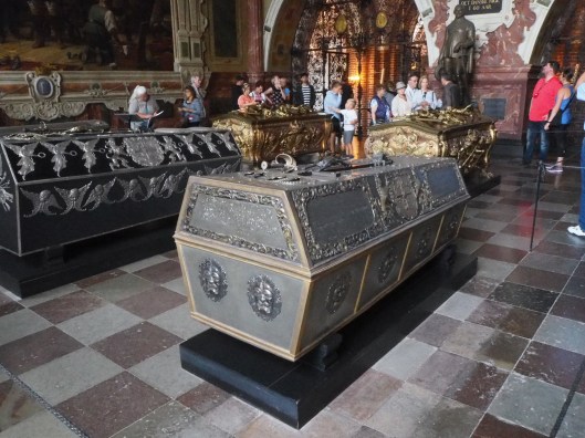 Time was limited here so we had to forgo the educational film, tea rooms and replica boats that you were allowed on. Instead we drove a short distance to Roskilde Cathedral. It is the burial place for the Danish Monarchs, with their crypts containing elaborate coffins ! The Church has been rebuilt and added on numerous times, it was interesting but we spent way to much time there…..everybody wanted to go back to the ships but the guide said it wasn’t possible……why not we said, because we must go back now…..a small mutiny averted by the promise of an additional stop….which turned out as a drop off in center of town as well as the ship. At least we’ve got something to write about in our mid cruise comments feedback.
