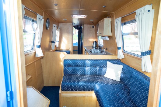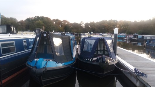 She has an L shaped settee, seperate shower and a lot more storage than T42 as the extra 4 foot is all in the cabin. T42 and Prime Thyme side by side at Pyrford whilst our friend Penny does the equipment transfer.
