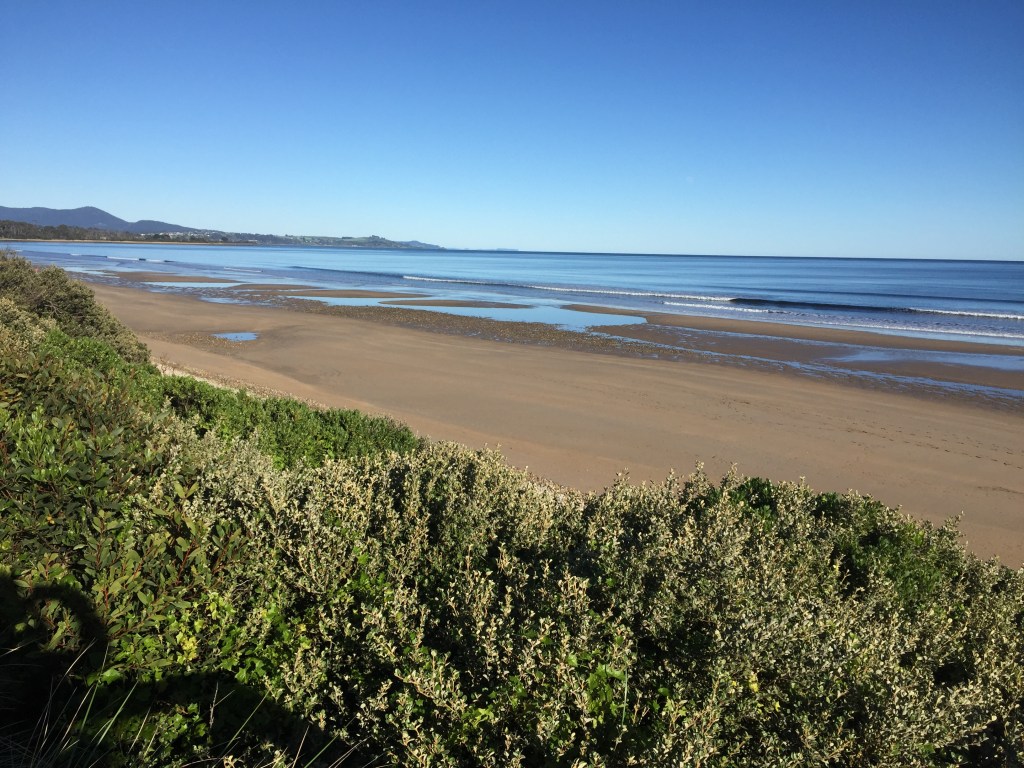 Well the last couple of days haven’t been anything to blog about, rather wet and windy. We got a couple of walks in, but that was about it. The weather forecast wasn’t looking good for Stanley either, so we cancelled and have relocated to our favourite spot at Turners Beach. This has good cycling and 2 excellent Cafes within walking distance, as well as being right on the beach. Mind you Rosie mis judged high tide and almost got swept off her feet by an errant wave. Most indignant, especially being towelled off..