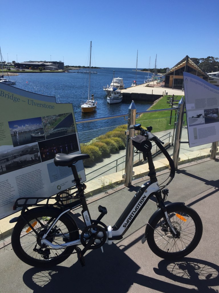 Leven River mouth looking towards UlverstoneTrails everywhere, under / over the bridge, and back towards Turners BeachMy Smart Motion e20 folding bike, folds into a carry bag with wheels attached.