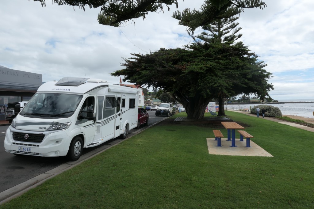 The 4 other couples in Caravans relocated to Ulverstone, but the site didn’t permit dogs being close to a Penguin breeding colony. We shall catch up once the sun re appears….till then, Cheers.