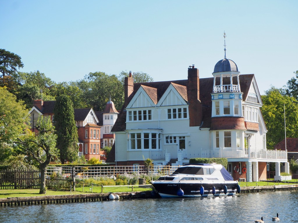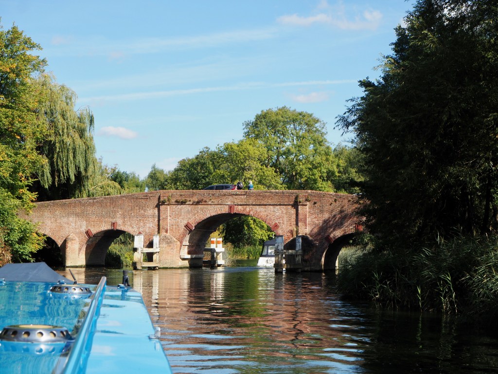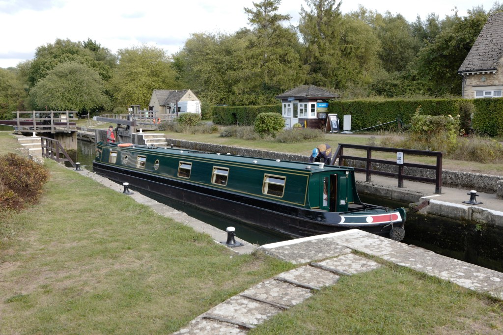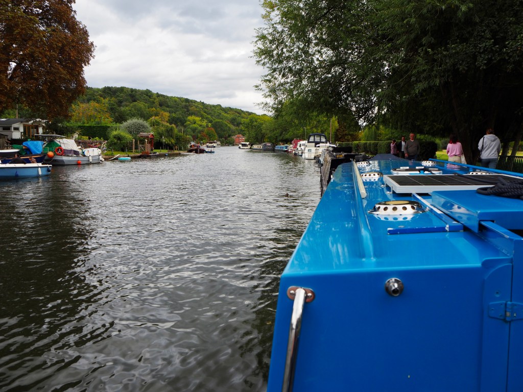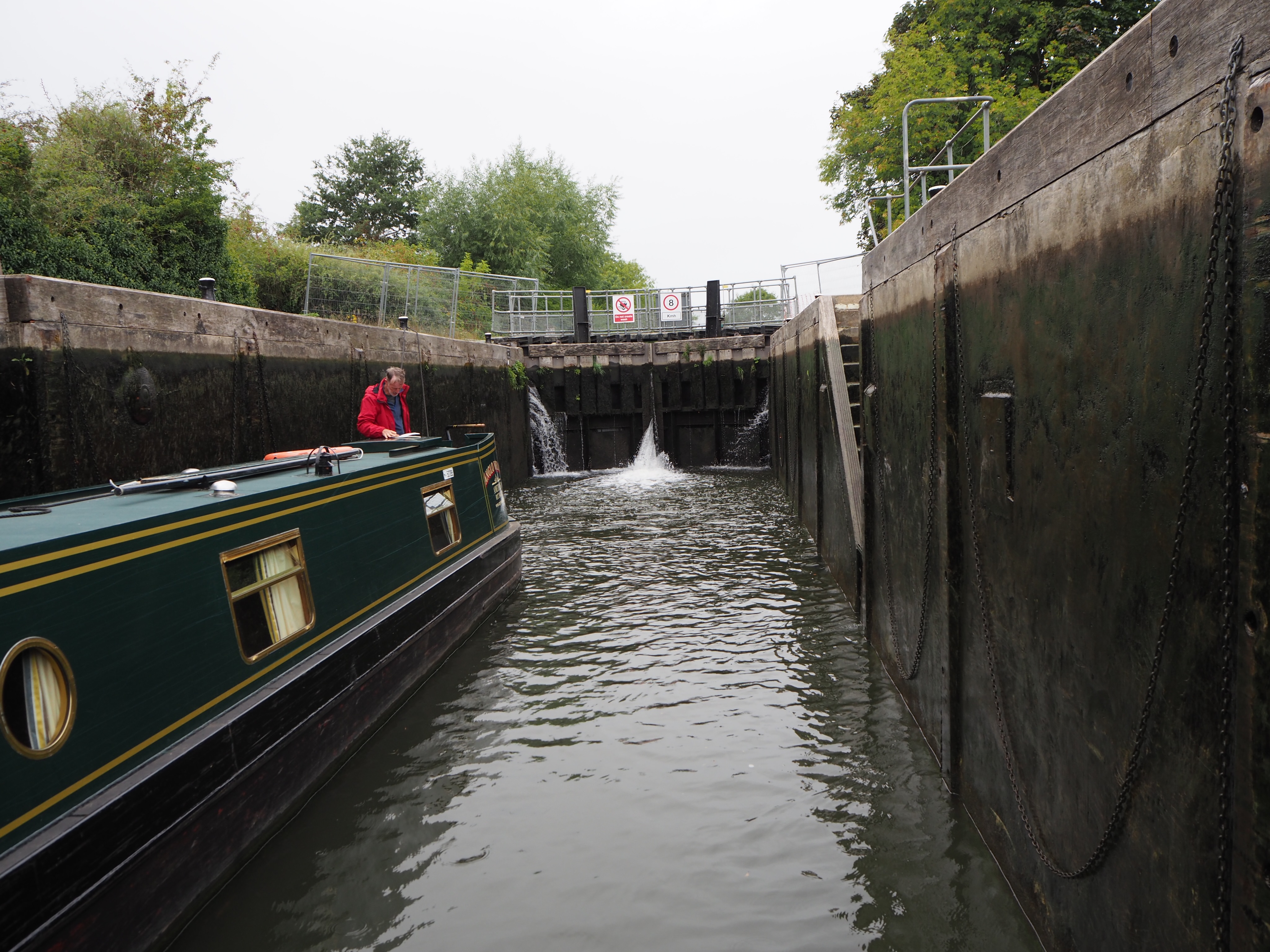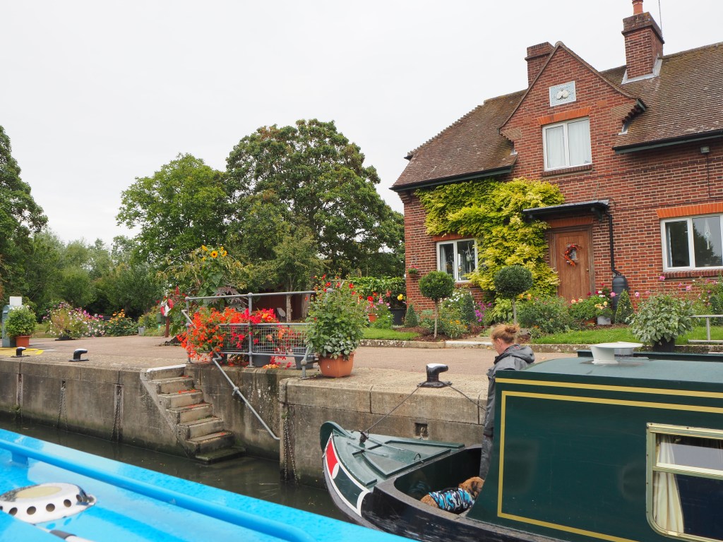 It was only in the afternoon we were told that the locks were still being manned, so we pushed off and headed down the Rowing Regatta course. First under the Henley Bridge, with its 2 figureheads, and then Temple Island at the end of the course. Time for a lock ? It’s maned !