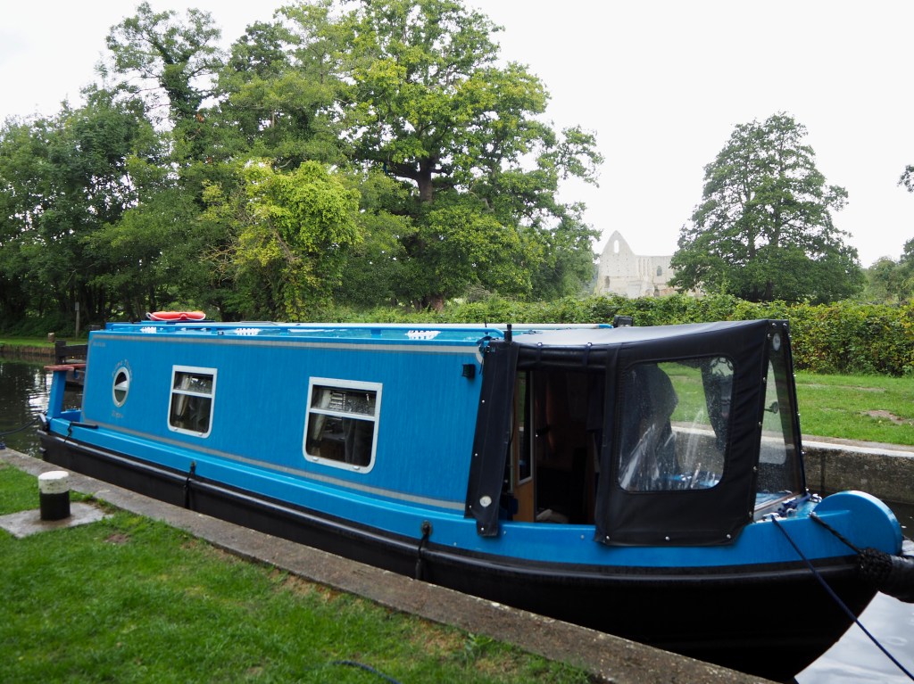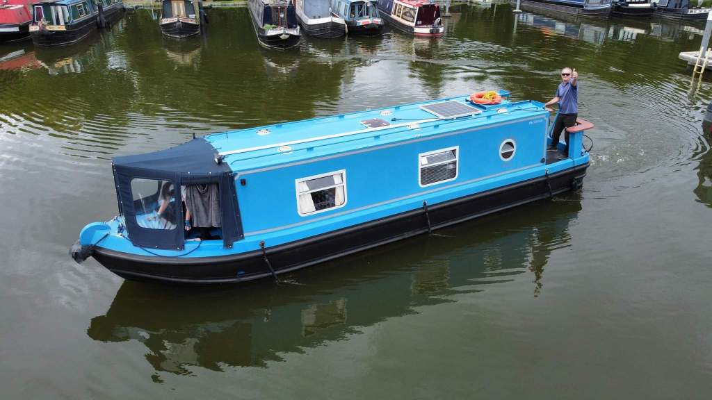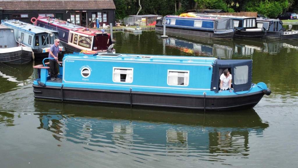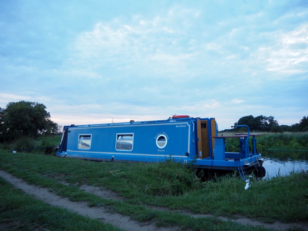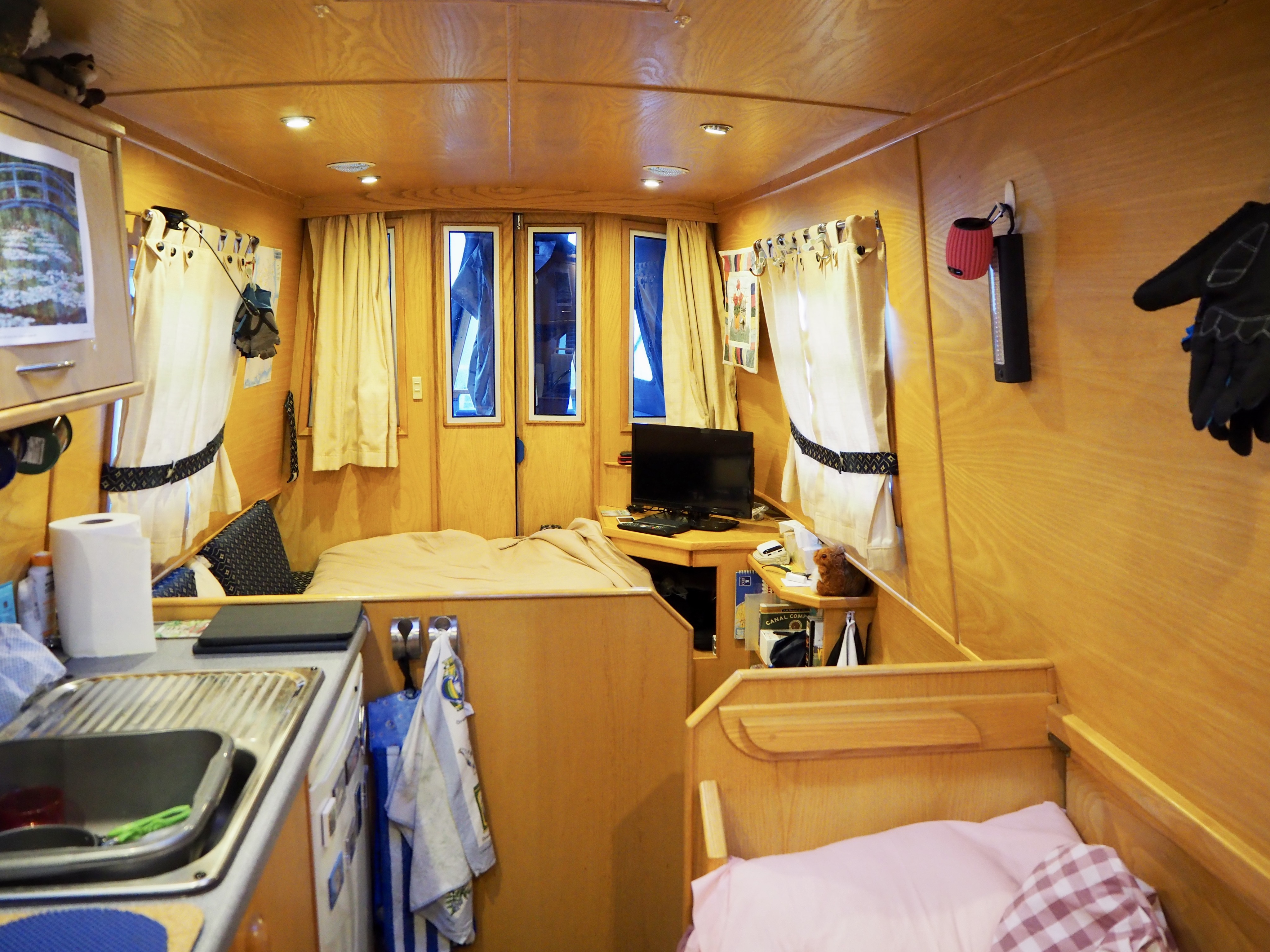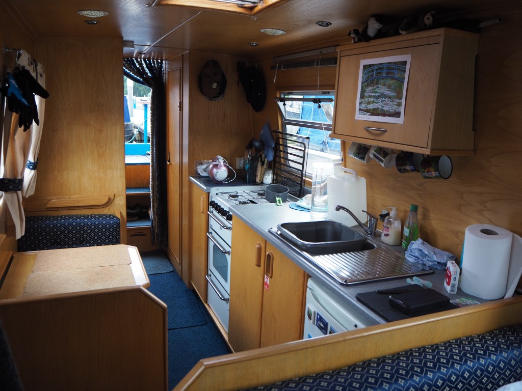 Yesterday was spent fixing the key start and sorting the boat prior to our lift to Lechlade. Any extraneous weight is left in the car, and our water tank will be emptied. We’ve had a lot of rain, thankfully in showers, so I can do interior/exterior work appropriately. It’s just started agin, hopefully it will ease for our loading at 10:30. Just a couple of pics of Prime Thyme in day and night mode. She’s unusual in having a seperate shower and bathroom either side of the very narrow corridor, if you leave their doors open there’s room to wield a towel !