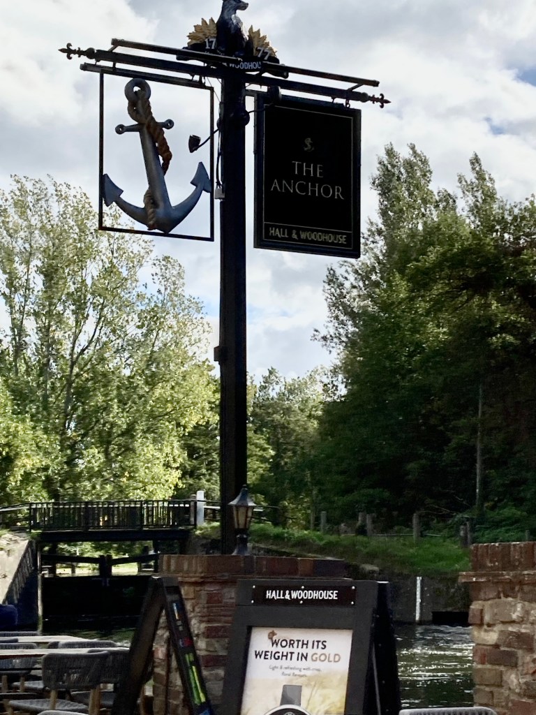 Then it was time to follow Penny for afternoon tea at Guns Mouth, but first Unstead Lock again…..that’s 6 times we’ve been thru it ! It was so good to catch up, talk Sea Otters, and what’s been happening here. The afternoon tea turned into celebratory G&T’s, and we’ve decided to spend the night here. Tomorrow we’ll start heading to Pyrford, but we might sneak 1 more trip on the Thames to see Sue at Walton Marina .