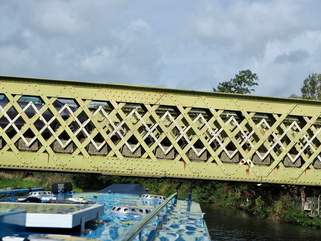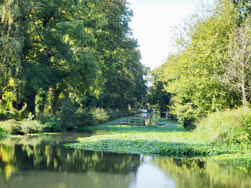 So downstream on the Wey, heading for the Thames. First up Woodham Junction, where the Wey and Basingstoke Canal meet. There’s a lot of floating weed about, perfect for snagging the rudder ! So you go into neutral then reverse to fling it off.