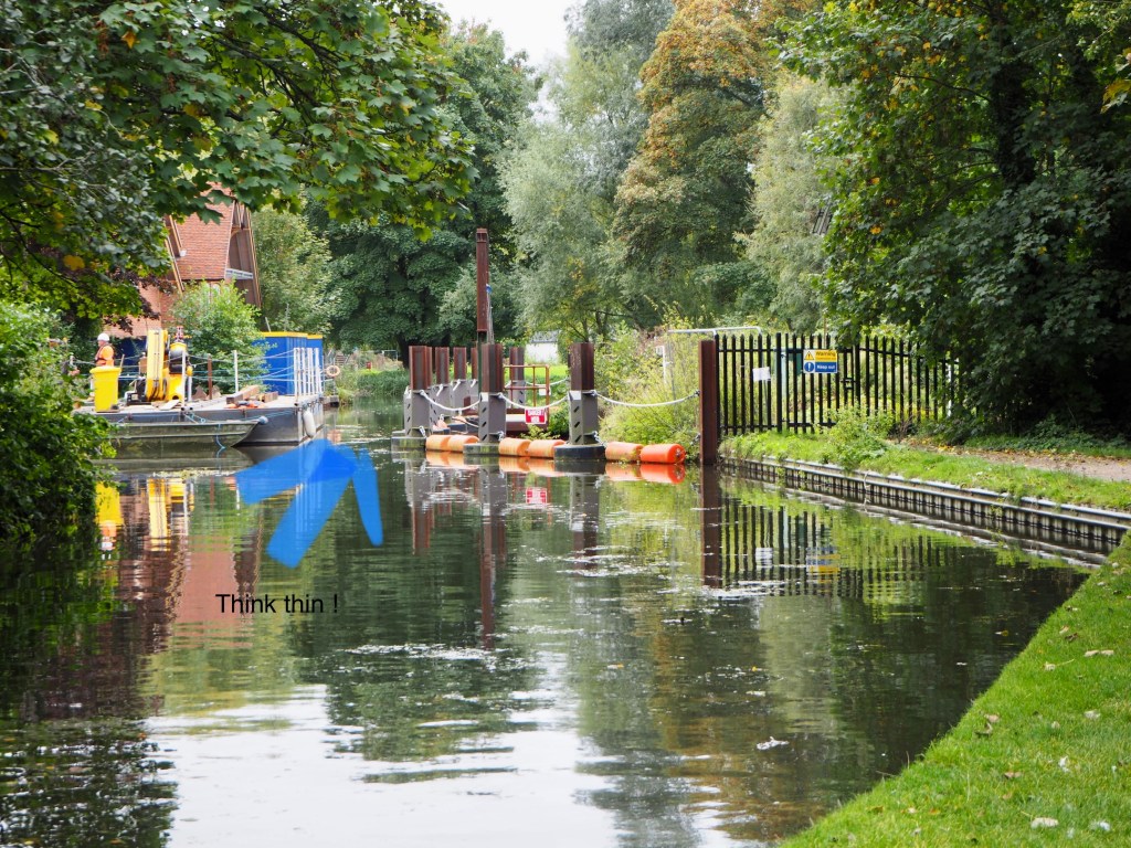 A relatively long day of 6 hours with few boats but a couple of diversions. First up the Guildford Weir reconstruction had 2 barges, but breasted up ! Talk about a narrow lock being squeezy with an inch clearance each side, these guys had left a millimetre…….and the weir stream helped as well ! No room for any boats wider than 6’10”!