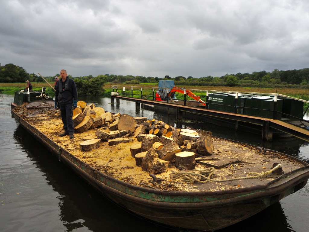 Approaching Worsfold Gates we saw another obstruction, a National Trust crew were offloading wood from a barge and tug. No problems as they reversed out to let us pass.