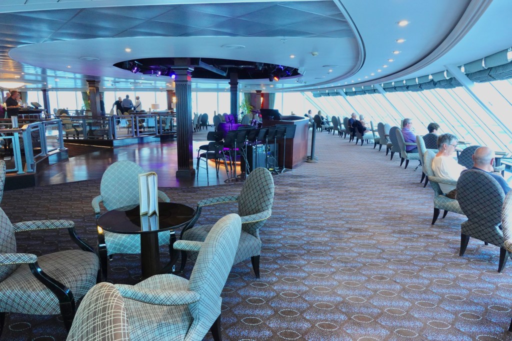 I started our first sea day with an hour long stationery bike ride, whilst Hazel knitted amongst the craft group in the Horizon’s lounge. This is a favourite haunt of ours, with a panoramic view over the bow. We both attended the “Gold” lecture as Alaska has such a history with the 3 gold rushes, and we’ll be visiting a number of old towns/ports involved in them.