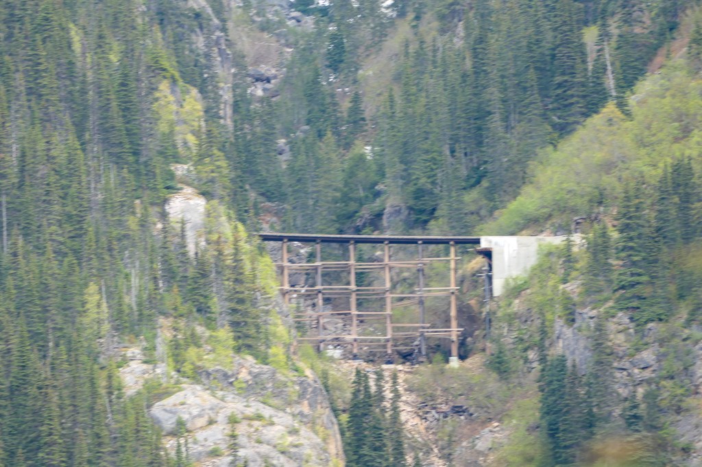 Starting thru the conifer forests we climbed upwards towards the snow line, seeing the rail tracks in the distance, high up on the mountain.