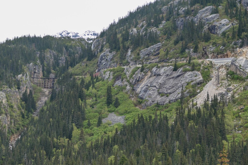 By now we were reaching Dead Horse Gulch. The 49ers had to drag a ton of supplies up to the USA / Canada border before being allowed to proceed further. It saved a lot of miners later on, but thousands of horses died doing it, as a horse was cheaper than the hay it needed.