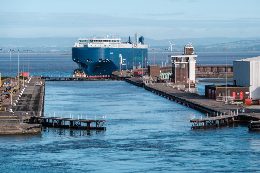 Land Ho…..EnglandTugs fore and aftExiting Sea Lock Inner Lock GatesCar carrier waiting for the Sea Lock at Avonmouth
