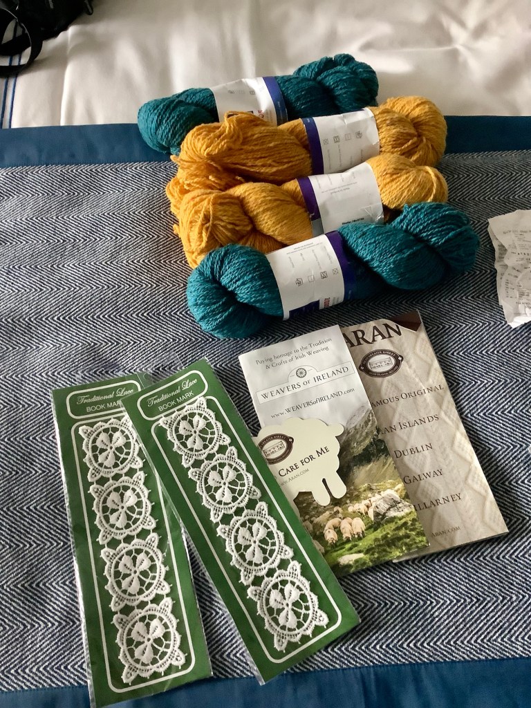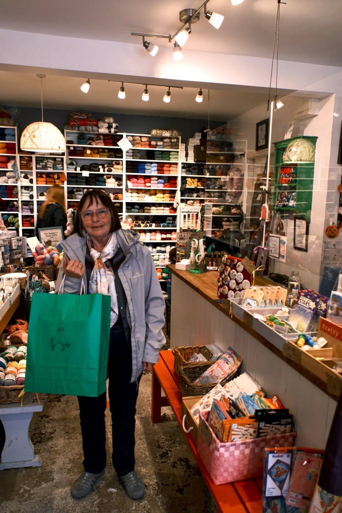 We drove on thru some pretty scenery to Kenmare Hotel for coffee and a scone. Much appreciated with the deteriorating weather conditions. Time in town was a bit limited, but Hazel found a few more skeins of a wool/cashmere/silk blend.