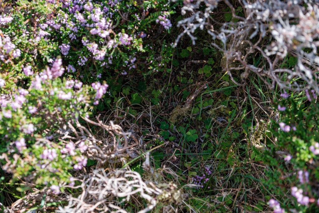 3rd generation local guide, 1 of 16 children ! Heather just coming outShamrocks growing under the Heather