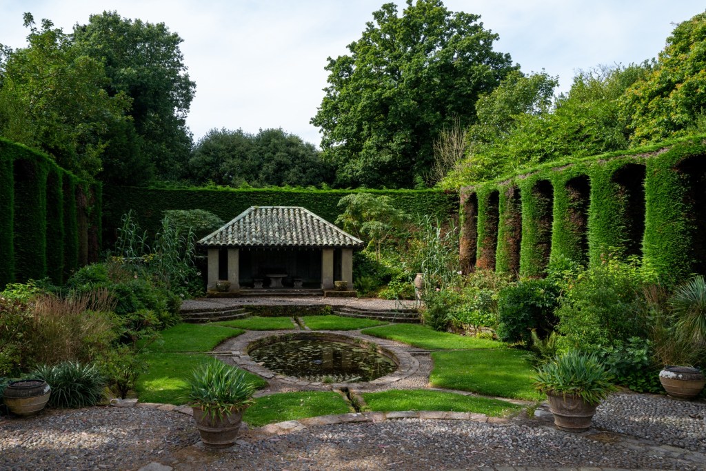 Mount Stewart HouseEntrance to the formal gardensSunken GardenSunken garden “cloister” walksClematis flowering around the “cloisters”View from Sunken garden into the Shamrock garden
