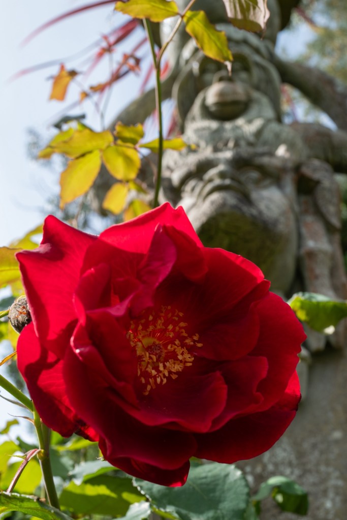 The monkeys looked fun CatDodo?Red Rose growing on a monkey statue