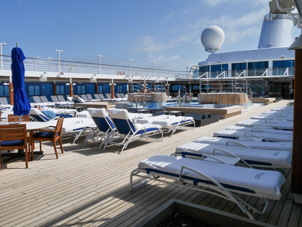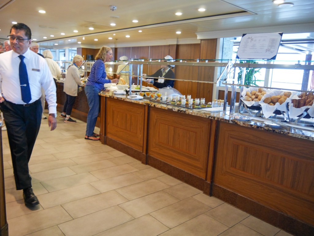 The library is a haven of peace and provides a wide range of books to fill in those odd hours when not touring, sleeping and eating. Off the pool deck, 1 small pool and 2 heated jacuzzis, is Waves Bar and Grill, perfect for a burger and drink. That flows into the Terrace Cafe, used for all meals it provides a casual area for eating, a preferred choice for breakfast.