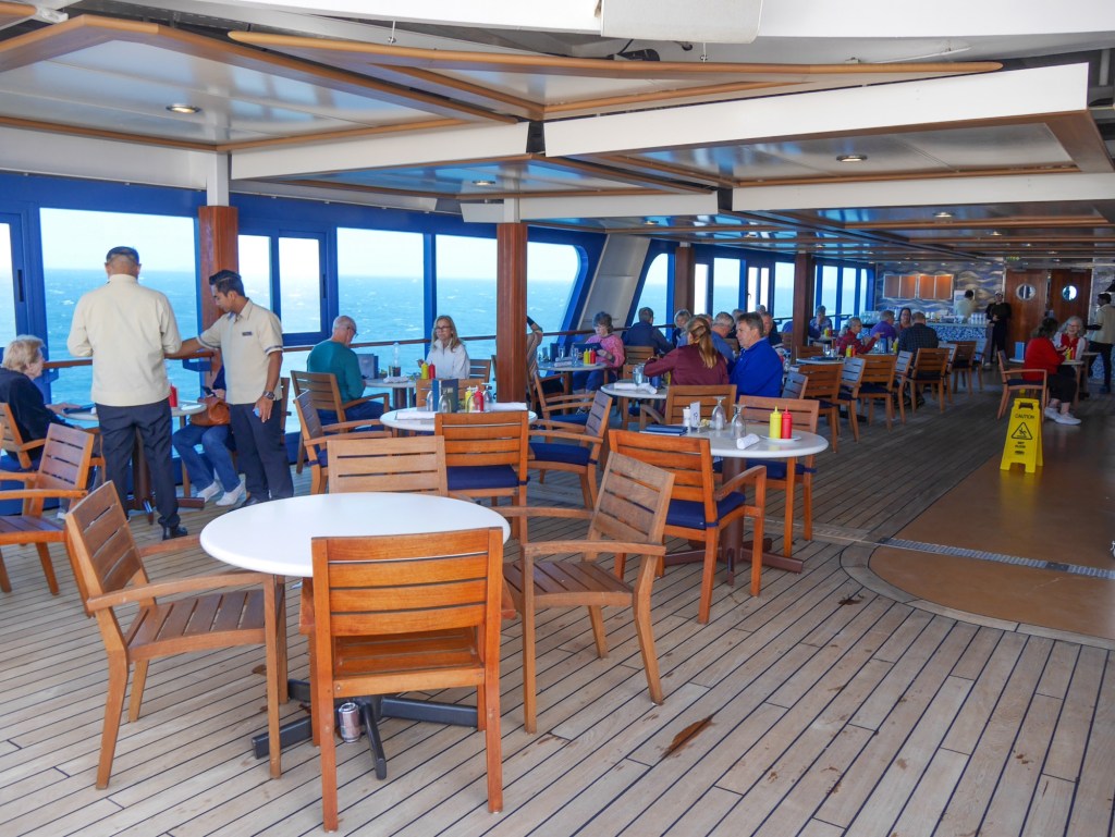 Pool DeckWaves GrillTerrace Cafe and our ever smiling ManagerLocated aft Terrace Cafe is shaped like a U