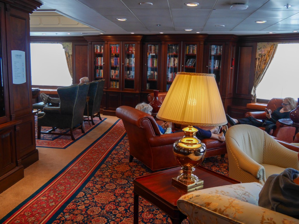 Aft of the ship is the lounge, used for shows and talks we also meet here prior to planned shore excursions. Finally our cabin, which has everything we require including a small veranda.