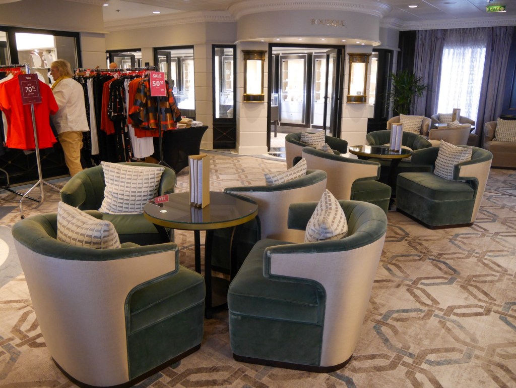 Down to Deck 5 now, with a couple of shops, lots of seating and Grand Staircase to Reception.