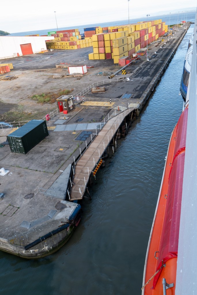 We had a late sail out of Belfast last night. The dockyards were still in full swing, I guess they work 24/7…..and Viking Orion was still at her berth with all lights on.