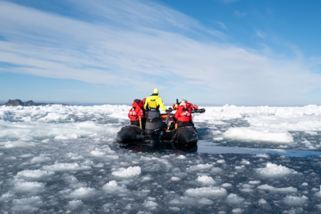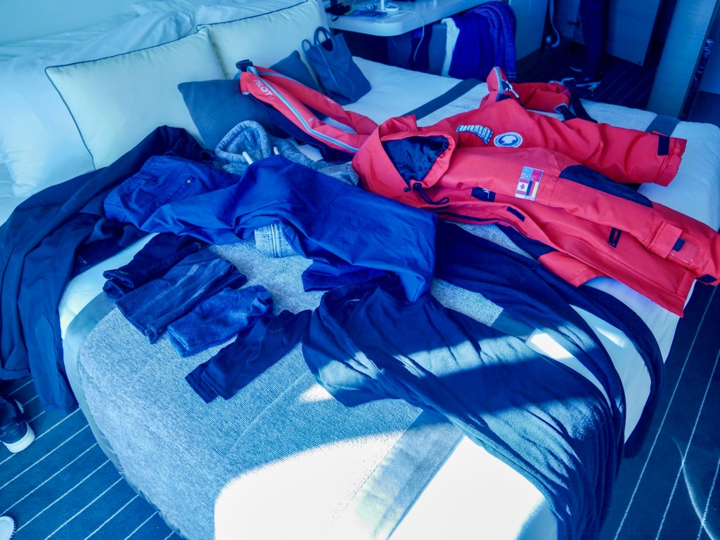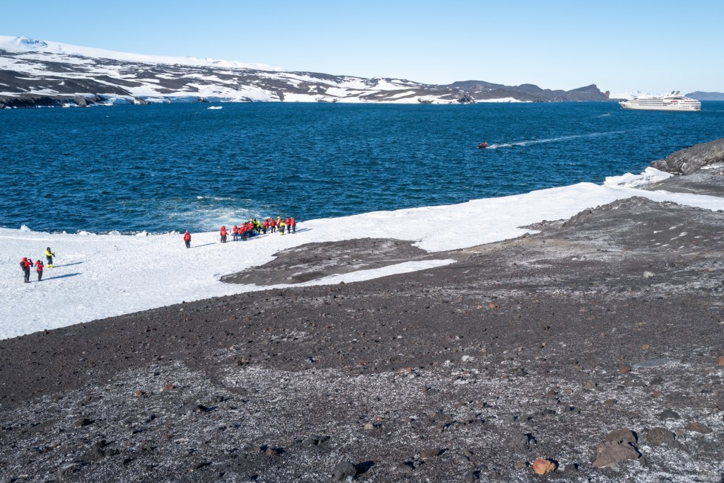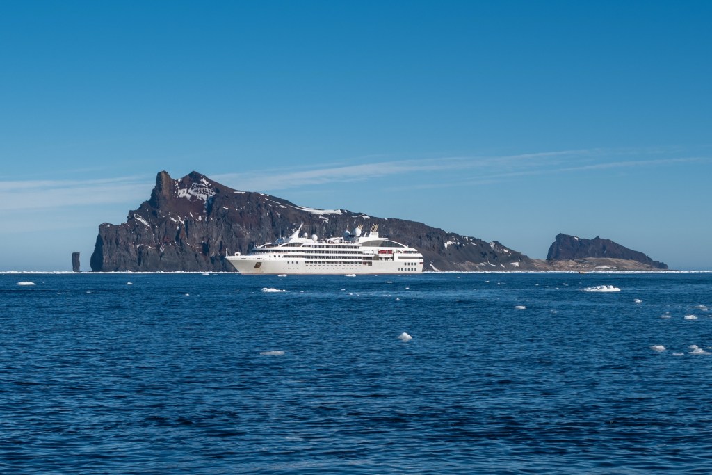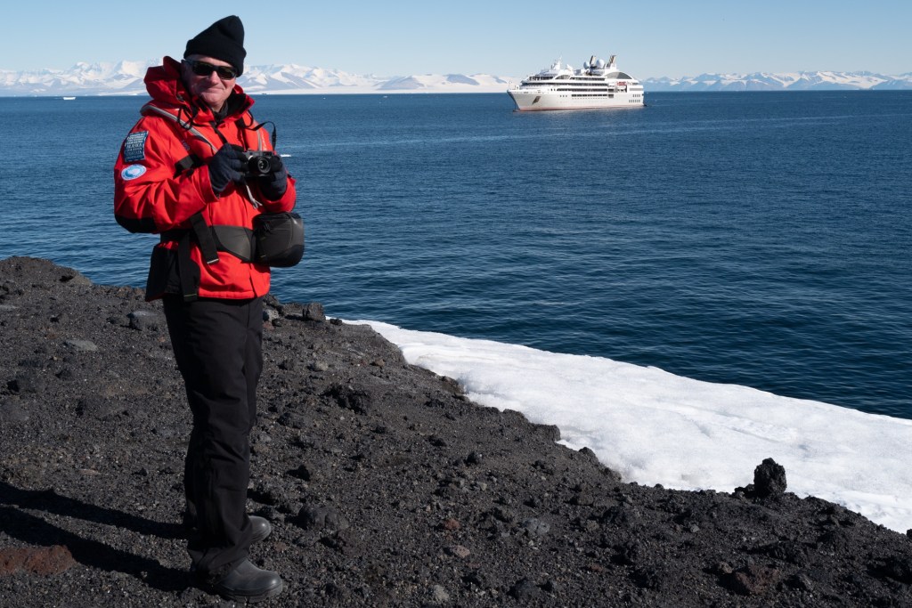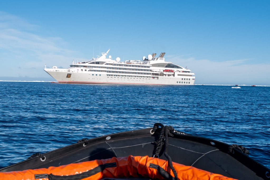 We were soon called for a Zodiac briefing. There was too much swell to attempt a beach landing but we could go for a cruise. As one of the last groups away we had time for lunch and a fortifying Bailey’s Hot Chocolate. Then it was time to suit up, and board our Zodiac piloted by a very French guide called Elsa.
