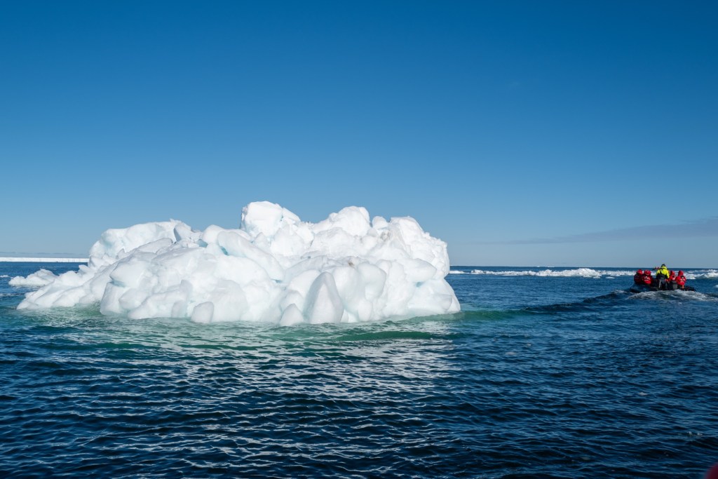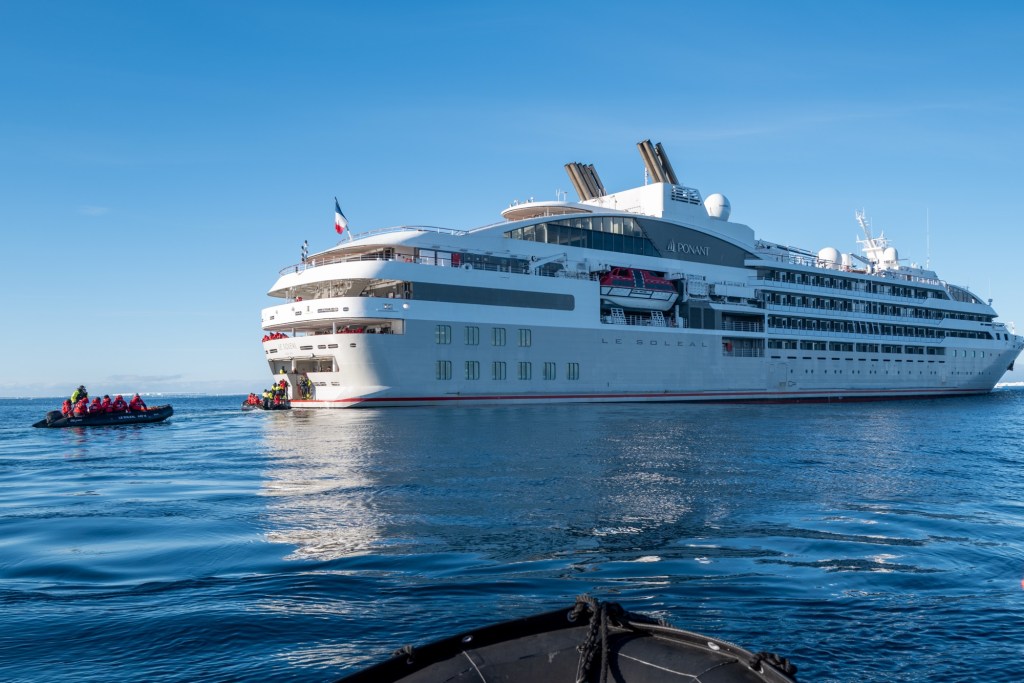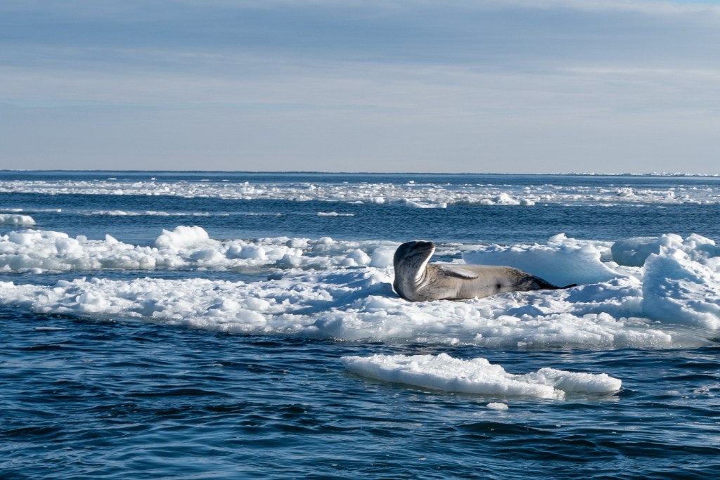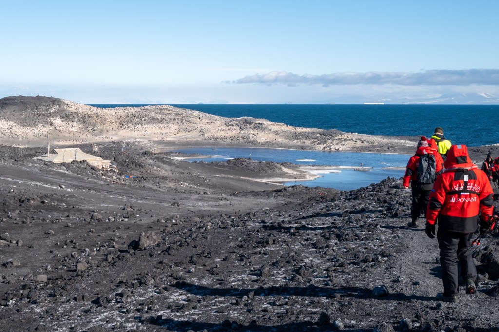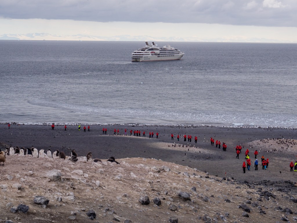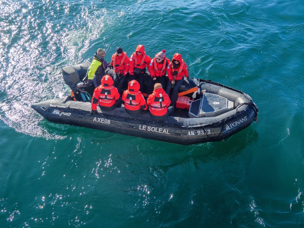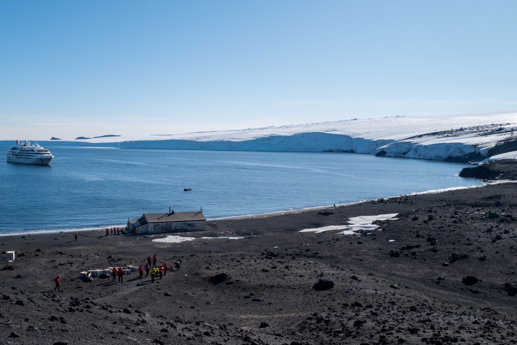 We were soon called for a Zodiac briefing. There was too much swell to attempt a beach landing but we could go for a cruise. As one of the last groups away we had time for lunch and a fortifying Bailey’s Hot Chocolate. Then it was time to suit up, and board our Zodiac piloted by a very French guide called Elsa.