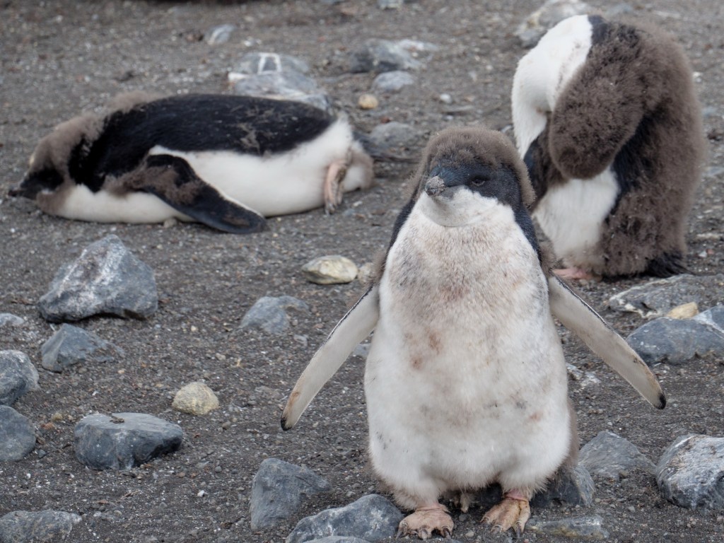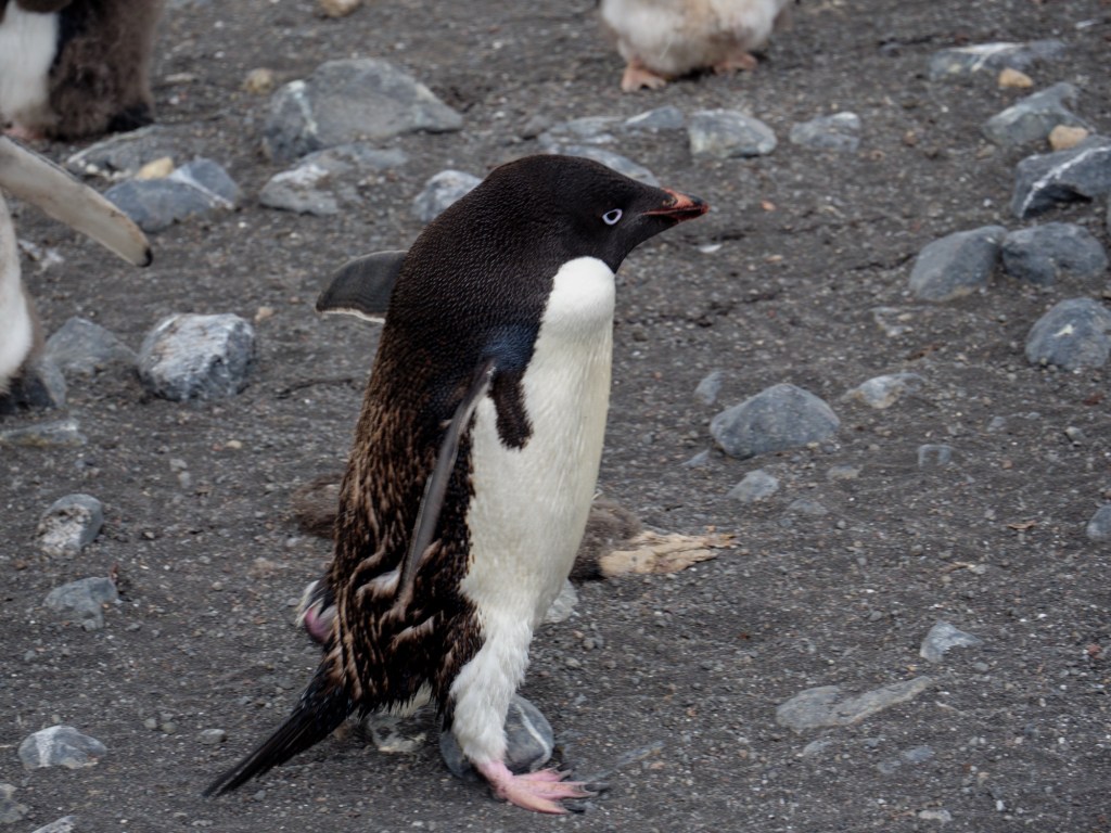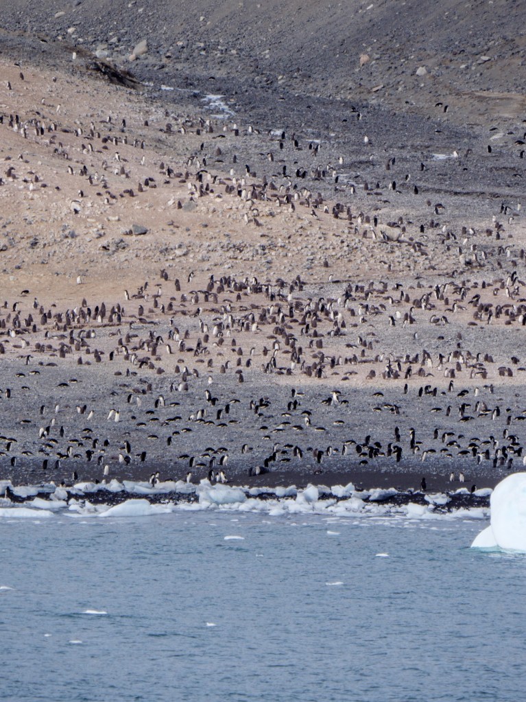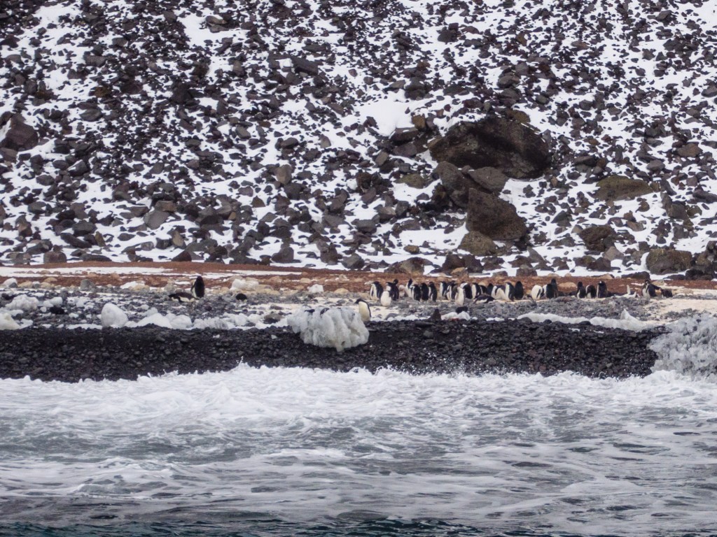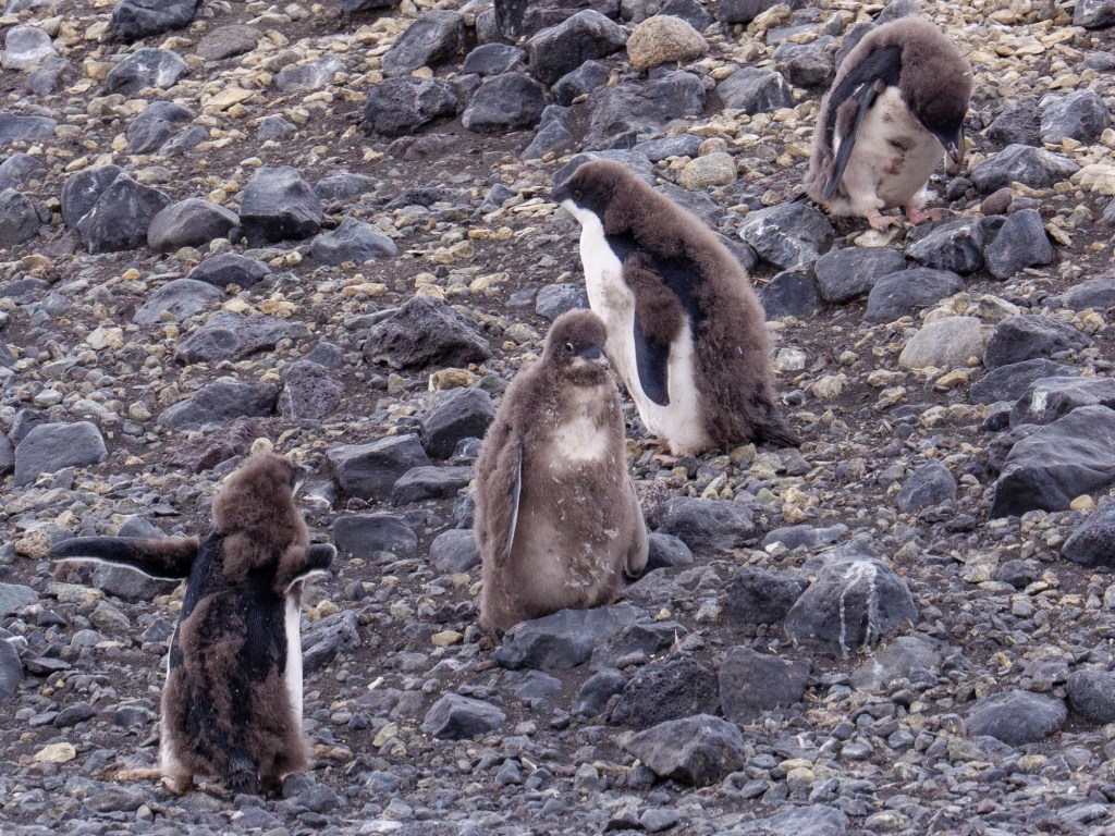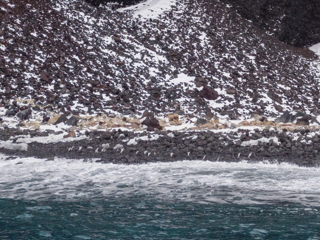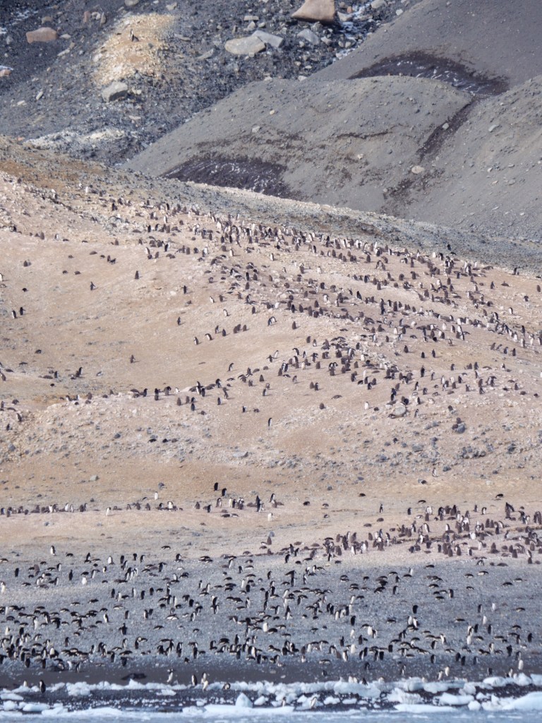 Then back to the island with Krill coloured guano showing where the Adelie colonies had been. Some youngsters were still around though, in the final stages of their down moult. However as most of the parents had gone, hunger will drive most to leave within a week or so. It was great to cruise along, Elsa piloted us just on the surf’s edge in a great display of Zodiac piloting.