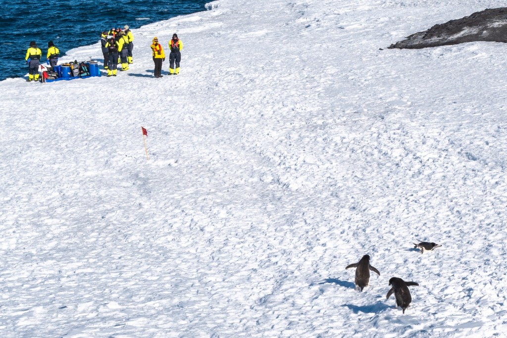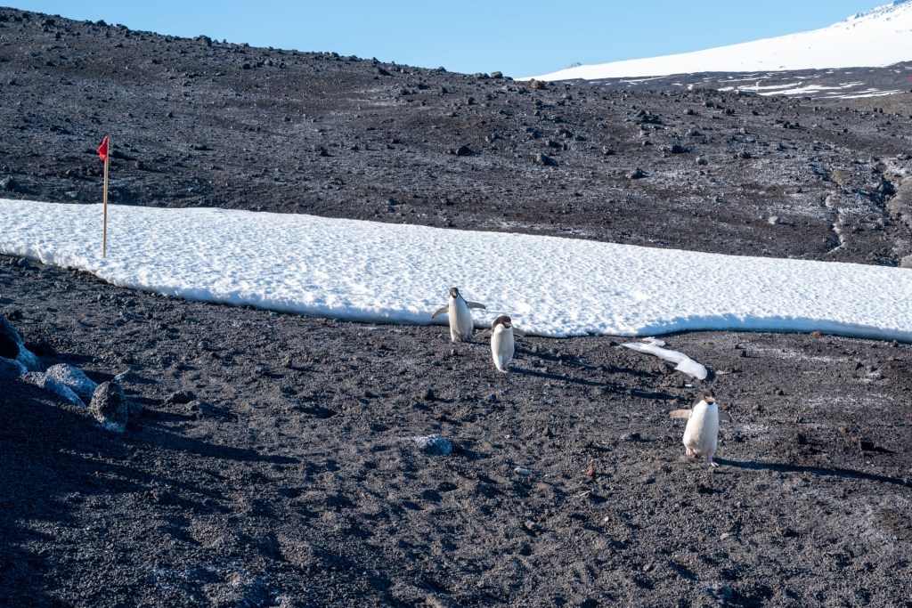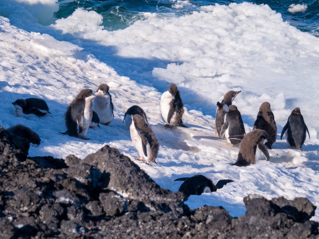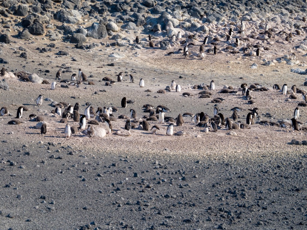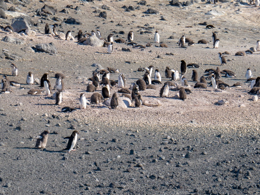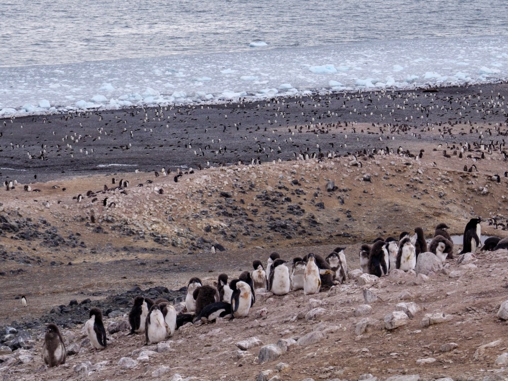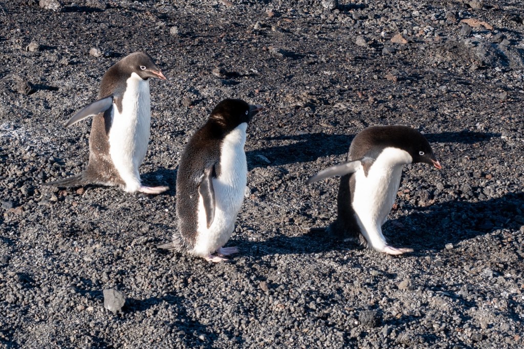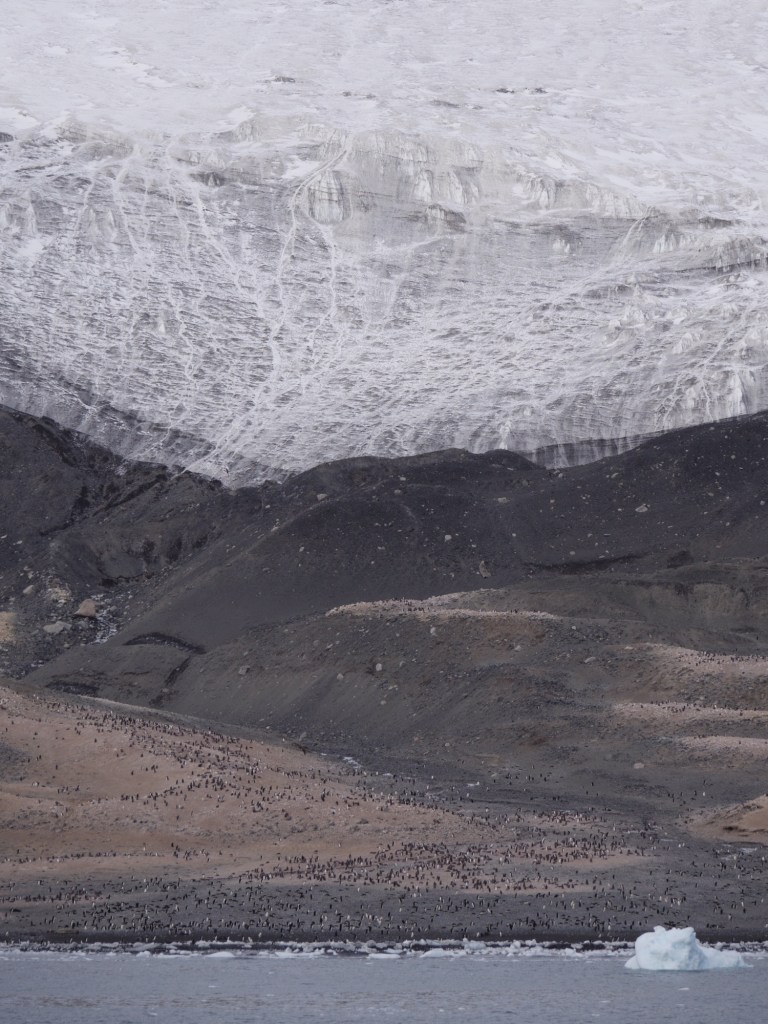 Then back to the island with Krill coloured guano showing where the Adelie colonies had been. Some youngsters were still around though, in the final stages of their down moult. However as most of the parents had gone, hunger will drive most to leave within a week or so. It was great to cruise along, Elsa piloted us just on the surf’s edge in a great display of Zodiac piloting.
