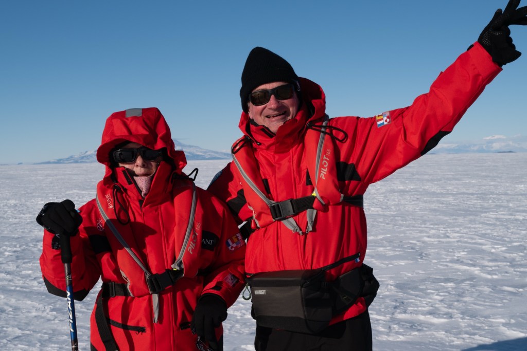 After all that I was determined to open the Prosecco, even if I froze my hand doing so ! Our fabulous guide and prankster then climbed almost out of the boat to take our picture, still smiling 😁