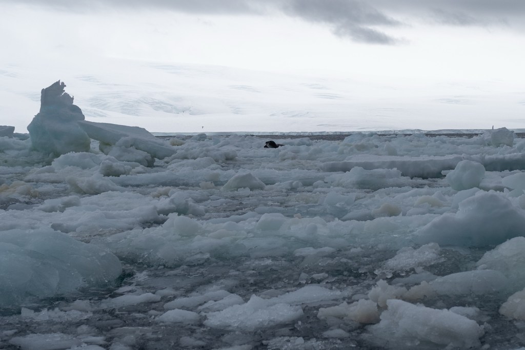 Cape Hallet was closed with ice, no Zodiac rides here, instead we headed back to the Possession Islands, which we had passed on our way to Scott Hut. We had done our first Zodiac cruise thru some ice here, but in far sunnier conditions. Le Soleal stationed herself off Svend Foyn Island. A forbidding piece of rock, but home to a dwindling population of Adelie penguins as they return to the sea to bulk up before winter.
