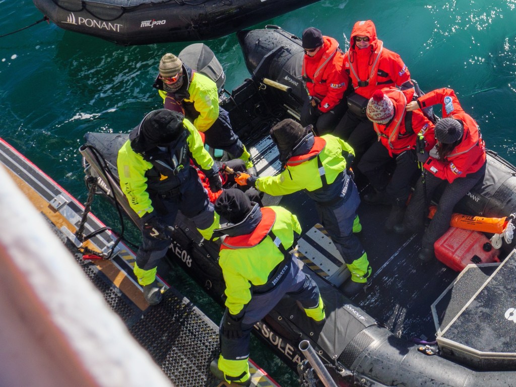 Elsa checked her watch and asked if we wanted to go straight back to the ship, or do one last trip right along the cliff edge. Obviously we choose the later. We had just started when the motor died and Elsa started glancing behind her at the swell.