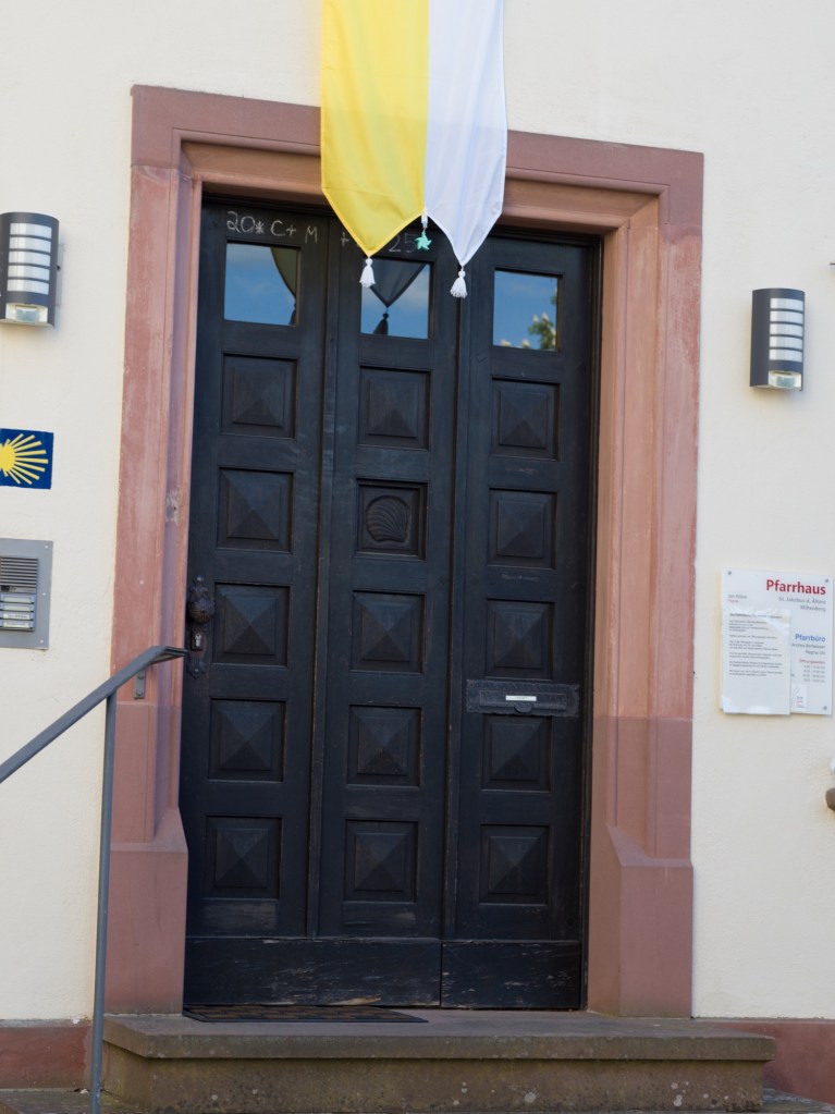 Entering town past the church a number of houses had shell motifs and chalk marks around the front door. It’s on a major pilgrimage to Spain, with these houses providing lodging.