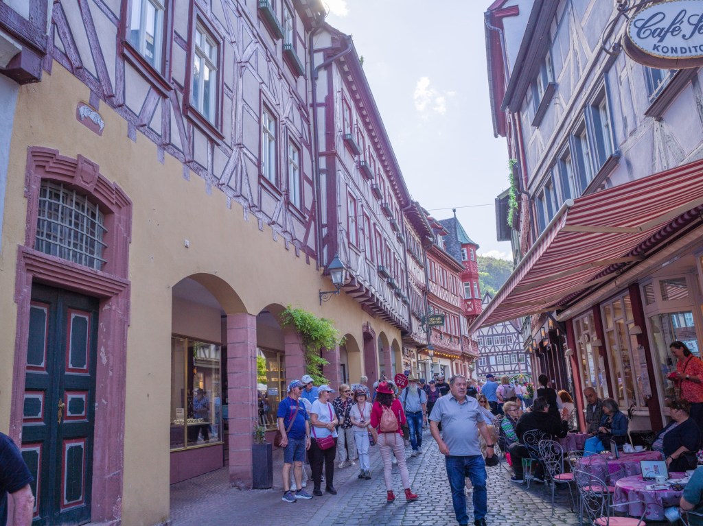 With houses dating back to the 1300’s ! the Main Street was a mixture of cute half timbered houses with a Brothers Grim twist. Being a center for witch hunting, most old houses have glyphs carved into them to ward off the evil spirits…..but on this sunny Sunday most people were concentrating on getting ice cream !
