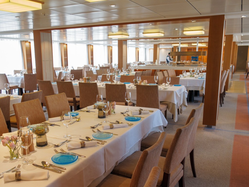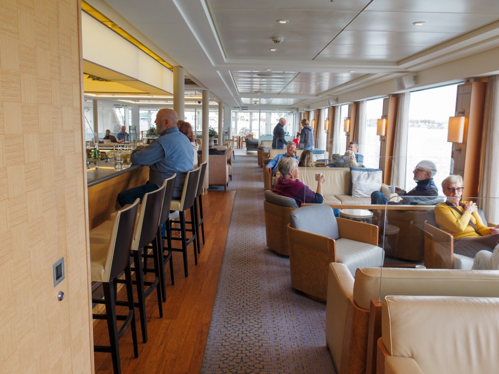 There is a very convenient coffee station and library at the end of our corridor, and with seating areas scattered around the ship it looks very comfortable and is in pristine condition.