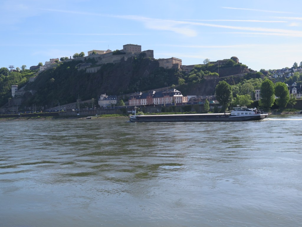 Yesterday had plenty to see and do, starting off with a visit to Konlenz, at the confluence of the Moselle and Rhine. Built on the footprint of a battleship projecting into the river, a striking statue of the Prussian Emperor Franz Joseph the ? dominated our landing area.