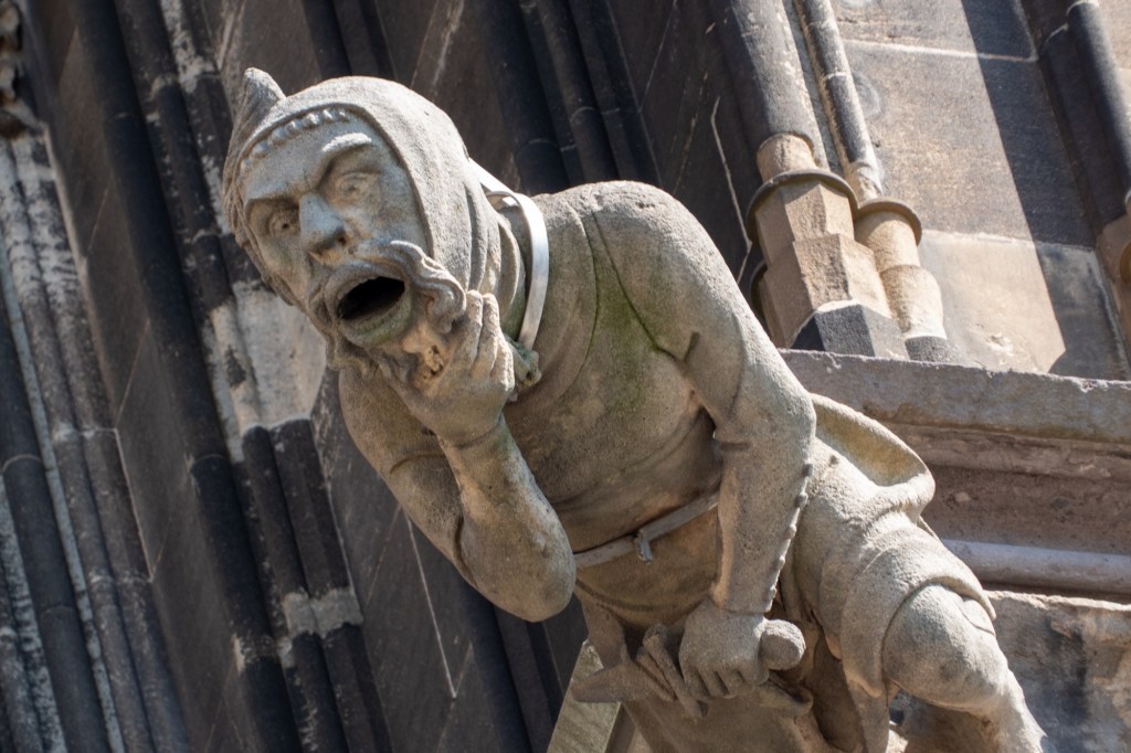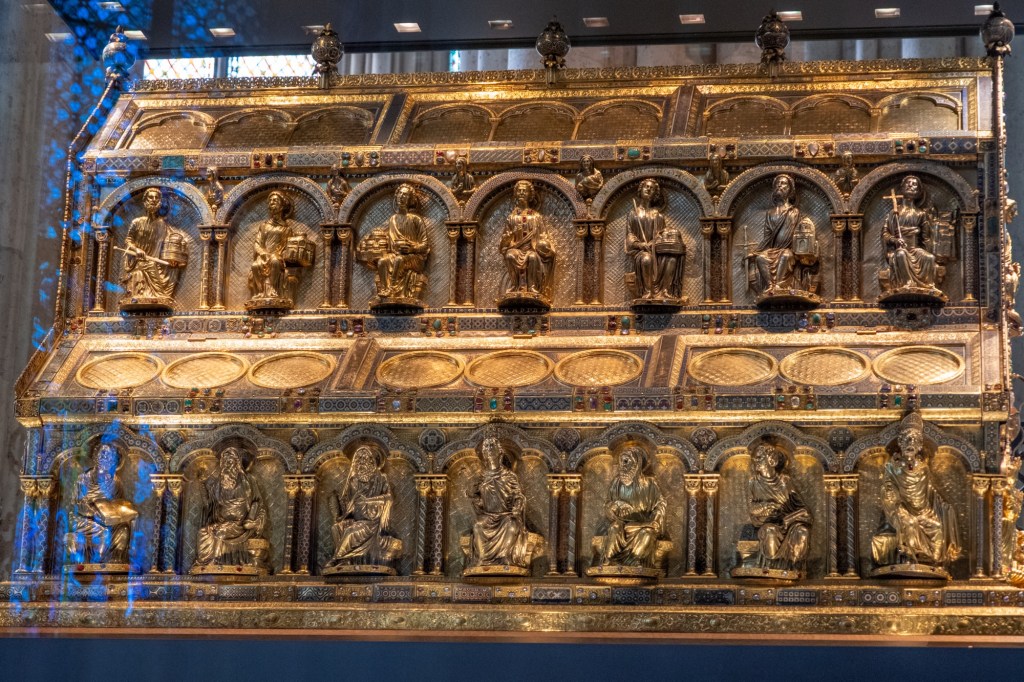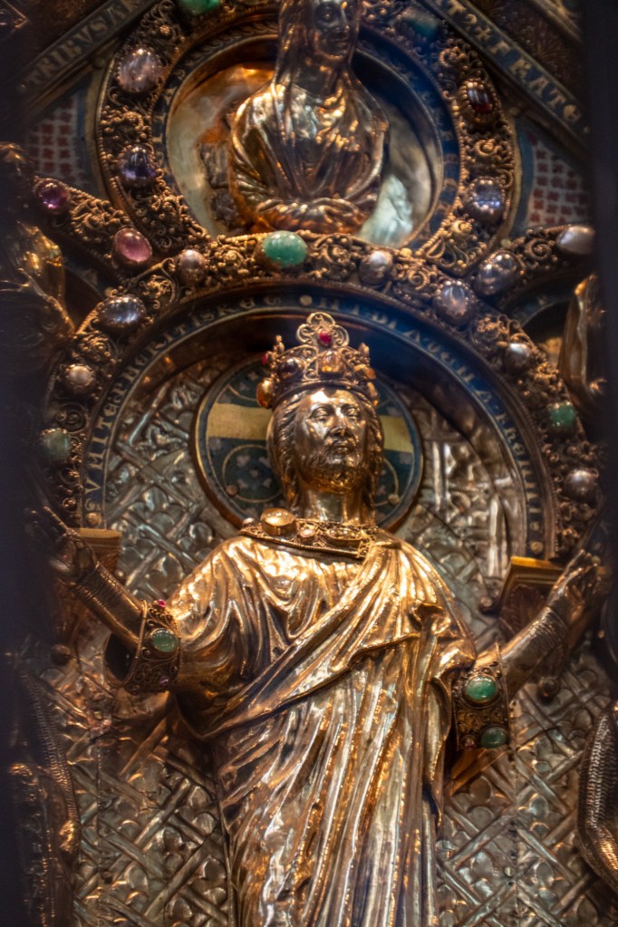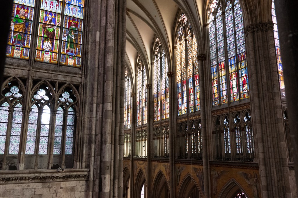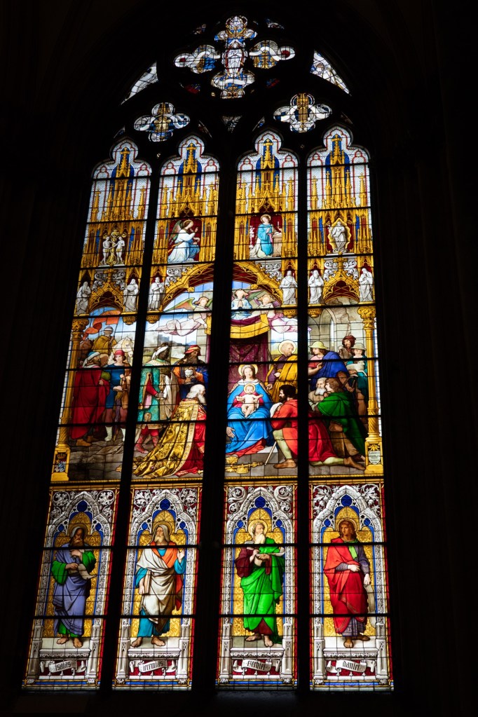 The gargoyles were an amusing feature on an otherwise formal building. The golden shrine inside, housing relics of the three wise men, was equally impressive, along with the stained glass windows.