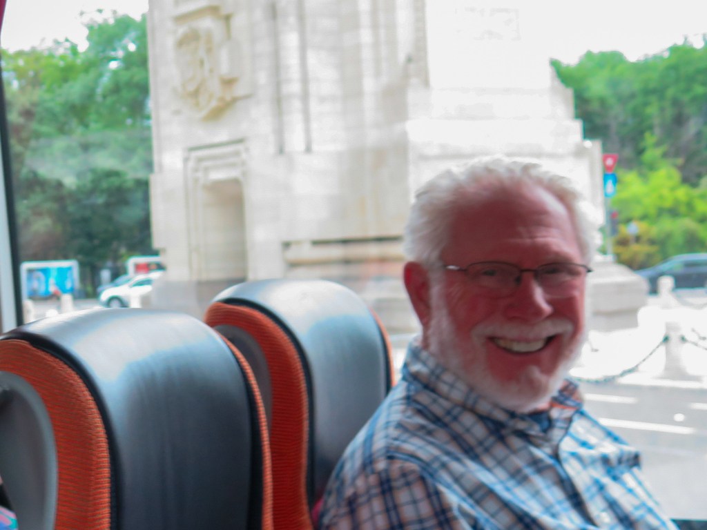 Our final drive to the hotel passed around L’arc de Triumph ! Party captured below with the ever smiling Roy. He and his delightful wife Susan have restored our faith in America….like our revolutionary guide said, all countries have ups and downs, you just need to look at the big picture over its whole history to restore a sense perspective.