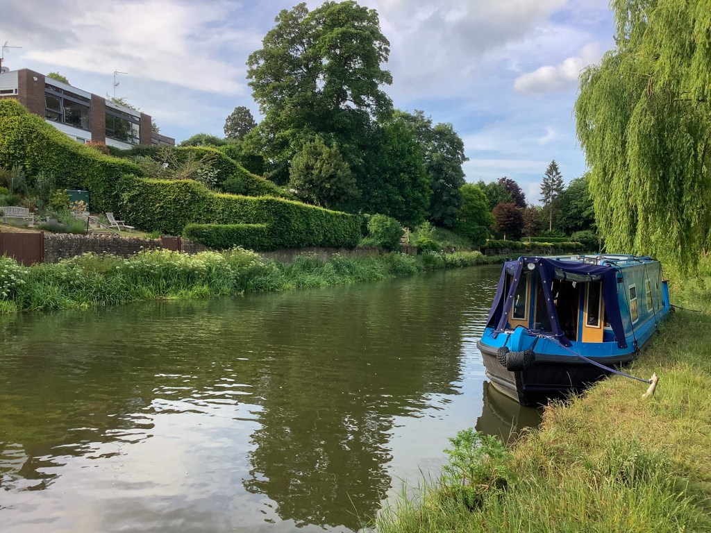 And the main reason for our visit ? Pecan and Cinnamon muffins from Gail’s…….the best in the world….even beating Zack’s white chocolate and raspberry ones from the Boathouse in Launceston ! It’s been another warm day, so we’ve headed back to the Guildford Meadows of last night for some shade. Sharing the locks with an experienced crew in a 70” boat we fairly whizz thru but not before passing the pirates….with much Aaar and My Hearties they look slightly worse for wear……maybe they did find the rum !